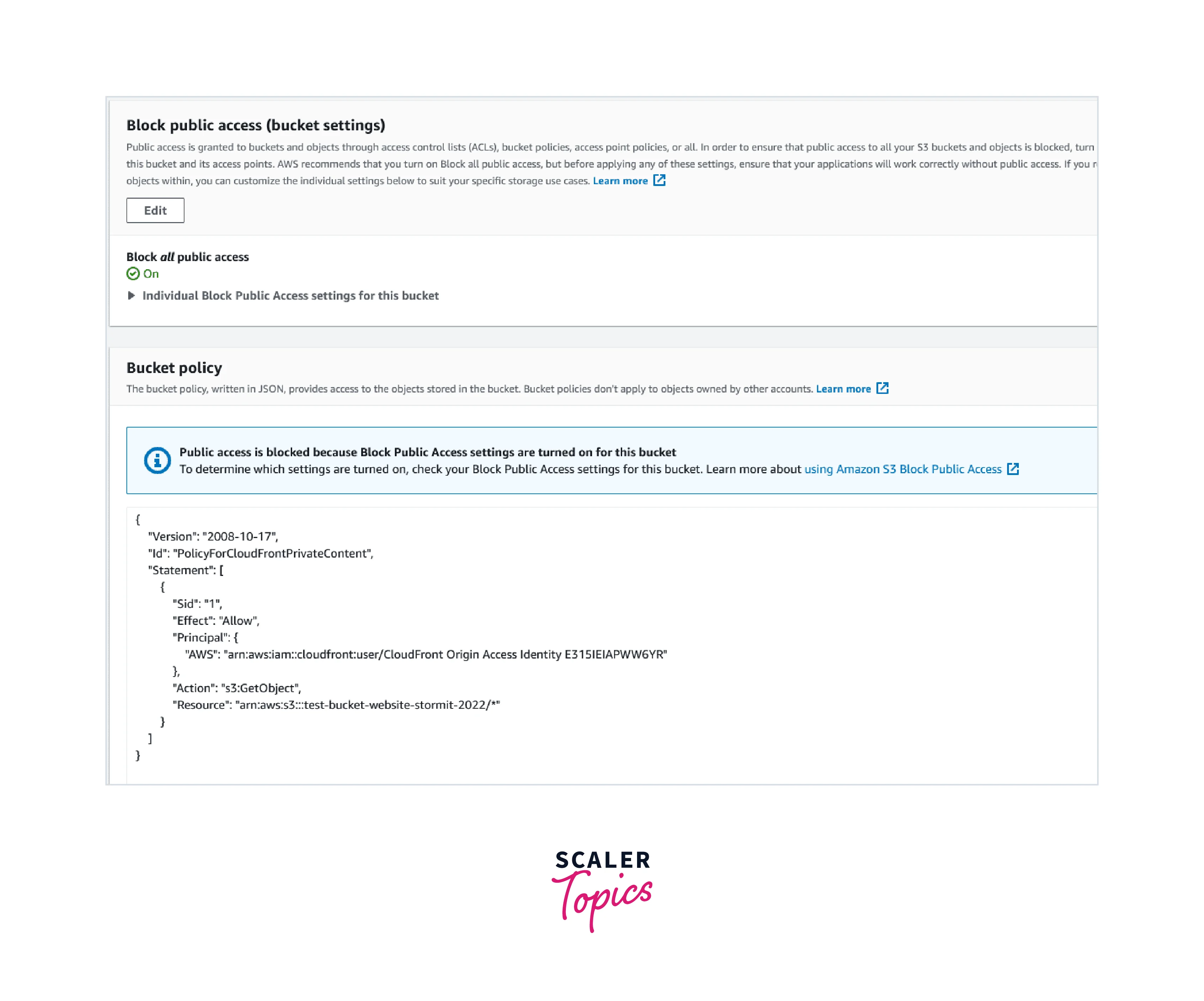 - Don't forget to disable all public access in your S3 bucket's permissions. Another change should be a new bucket policy.
