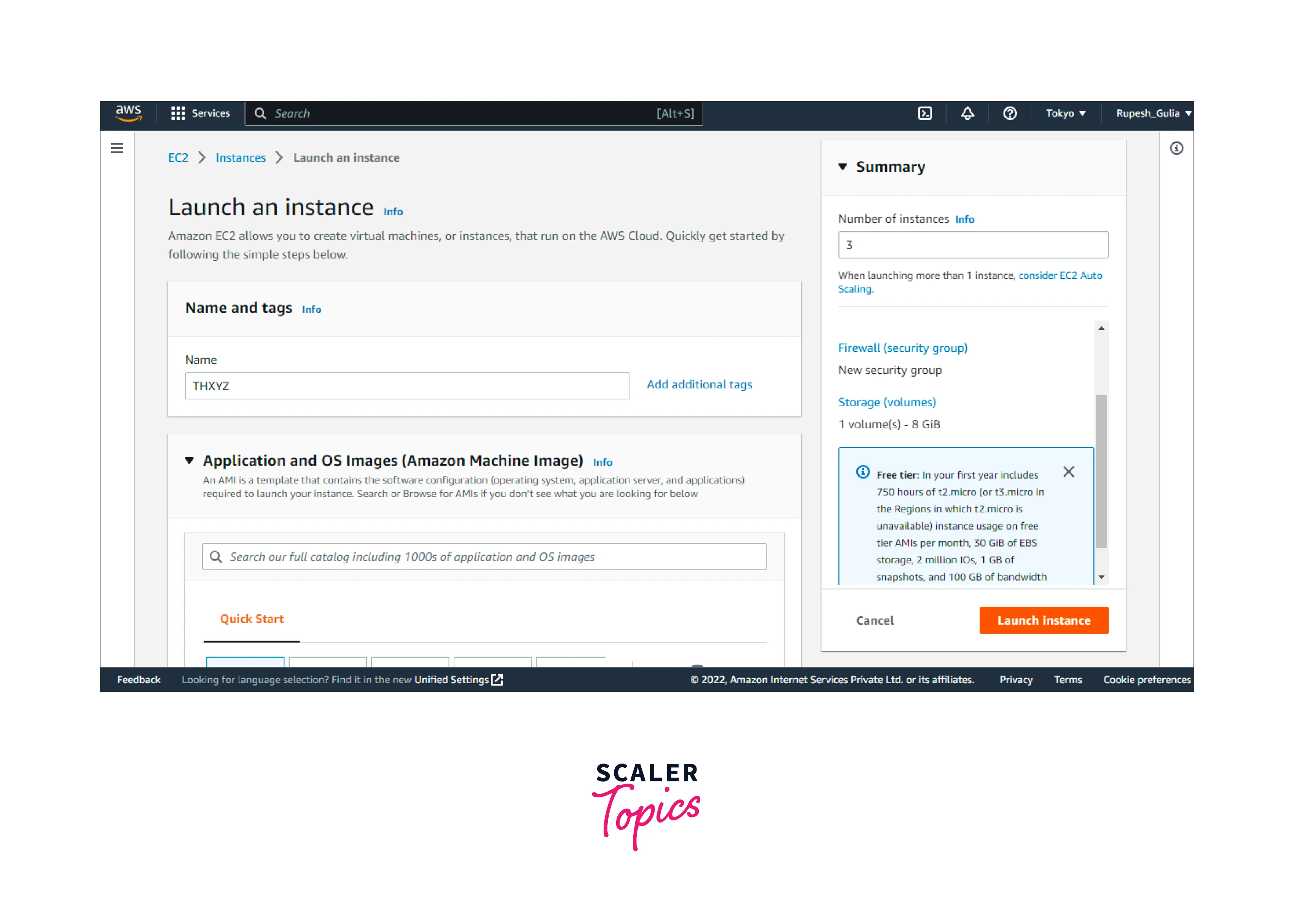 Inside the Launch instance window on the EC2 dashboard, select Launch instances, and afterward select Launch instances from the alternatives that display. Fill out the form as prompted, making sure to include the number of things: