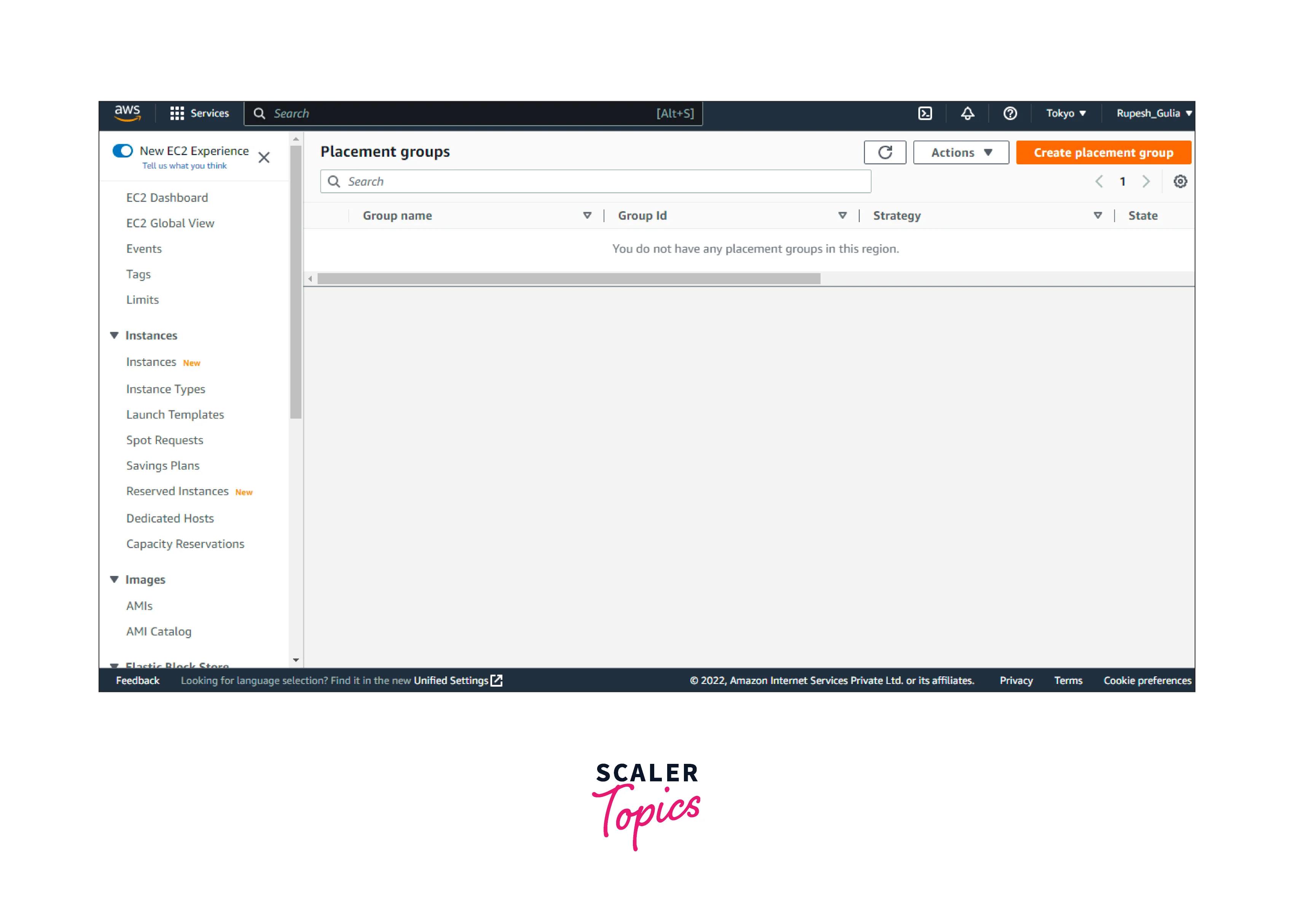 - Depending on the needs of your application, AWS offers various placement options for your EC2 instance. You may arrange EC2 instances in multiple placement groups to ensure that your application has low latency or high availability.