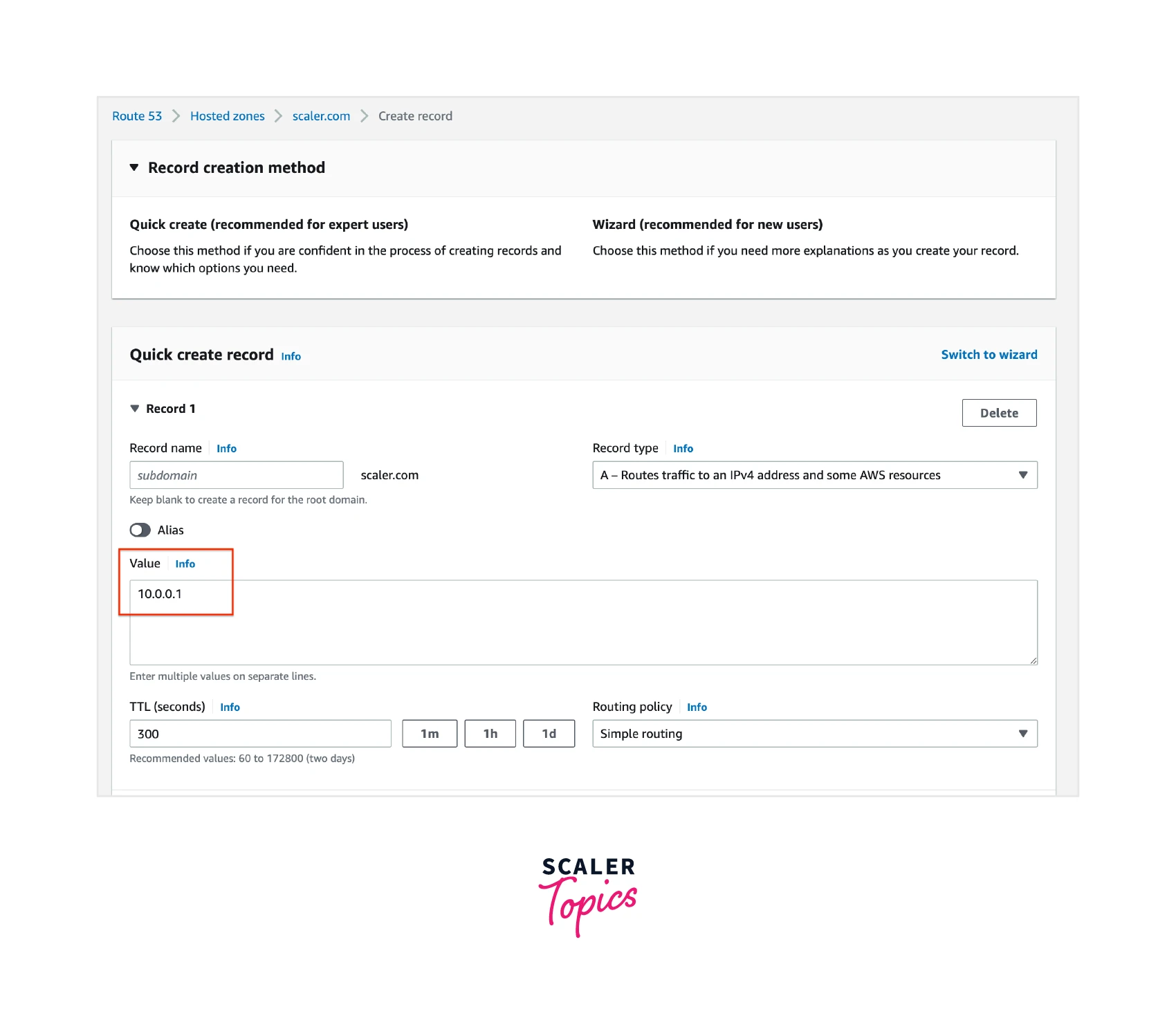 - By taking "scaler.com/topics" as an example, we understood how AWS Route 53 works.