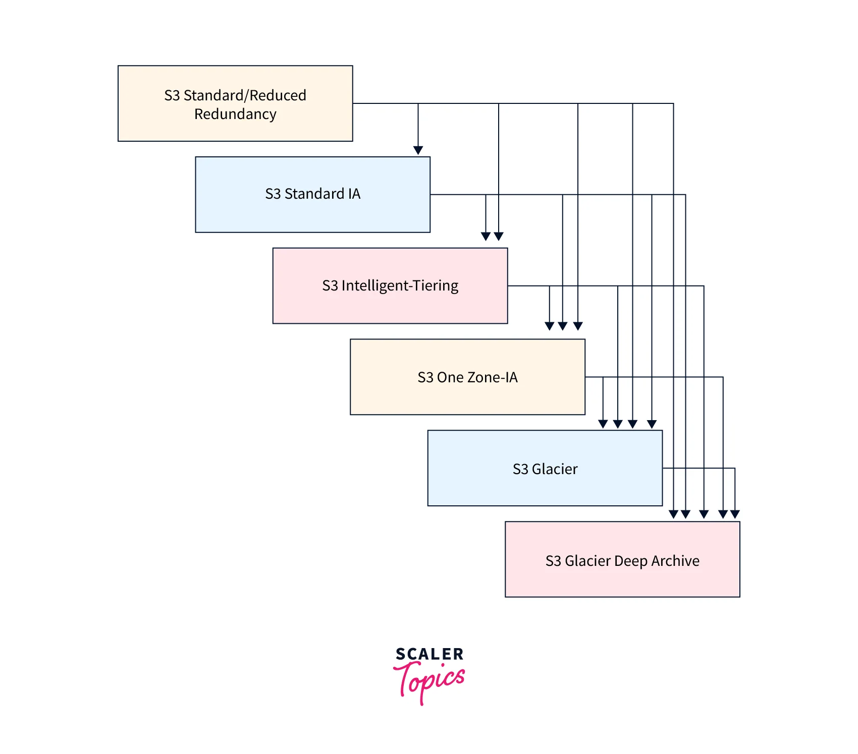 - You may instruct Amazon S3 to move objects to cheaper storage classes, archive them, or destroy them using AWS S3 Lifecycle Policy configuration rules.