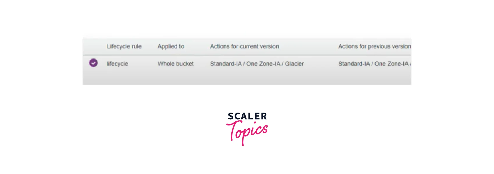 Using the AWS S3 Console: By utilizing a shared prefix (object names that begin with a similar string) or a tag, you may create AWS S3 Lifecycle Policy rules for all or a subset of items in the bucket. An AWS S3 Lifecycle Policy rule may be used to define actions that are particular to current and non-current object versions. See the following for further information:
