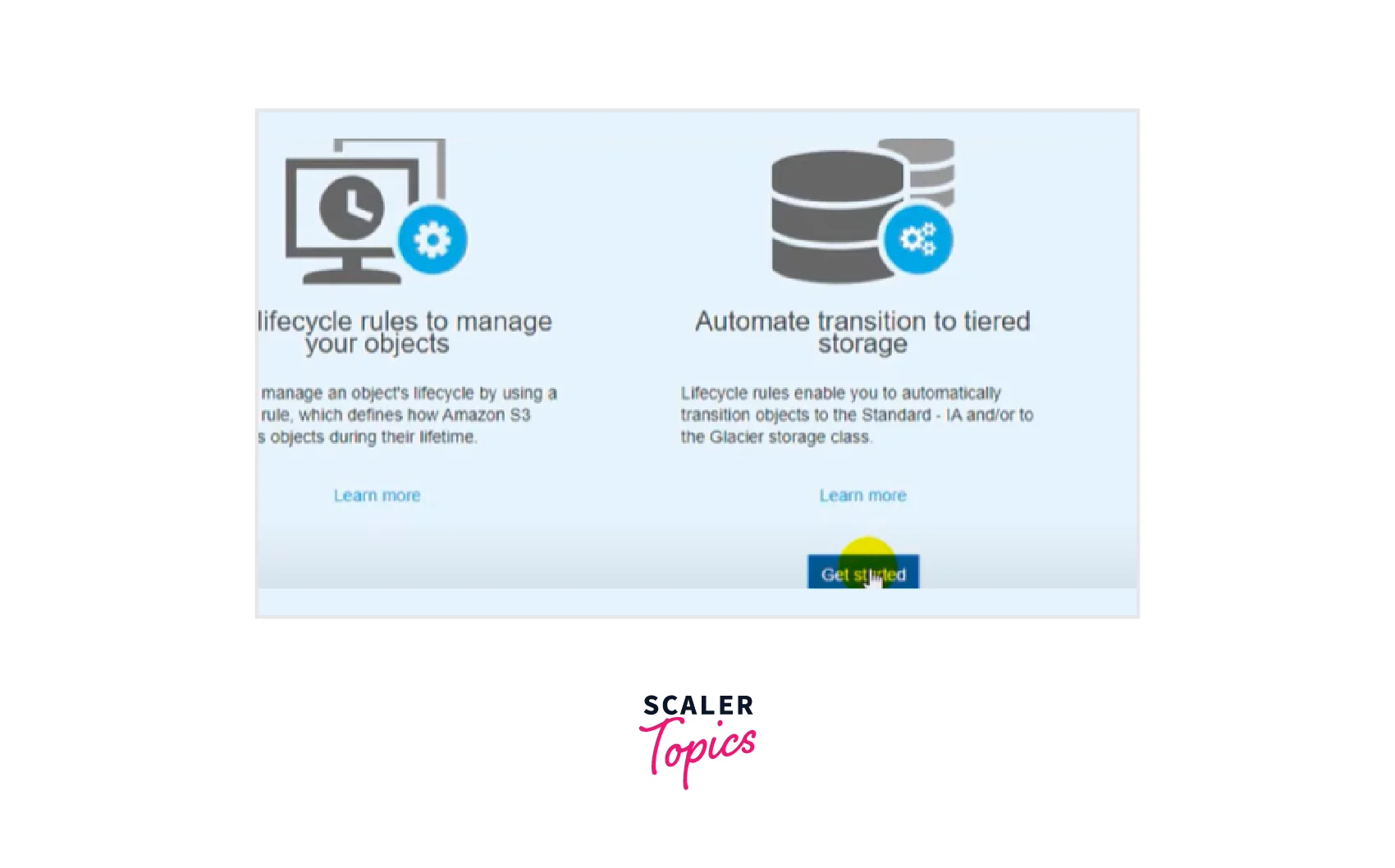 Configure the Amazon S3 Existence of your objects to ensure that they are stored cost-effectively throughout their lifecycle. An S3 Lifecycle configuration is a set of rules that describe the activities that Amazon S3 does on a set of objects. Actions are classified into two types: