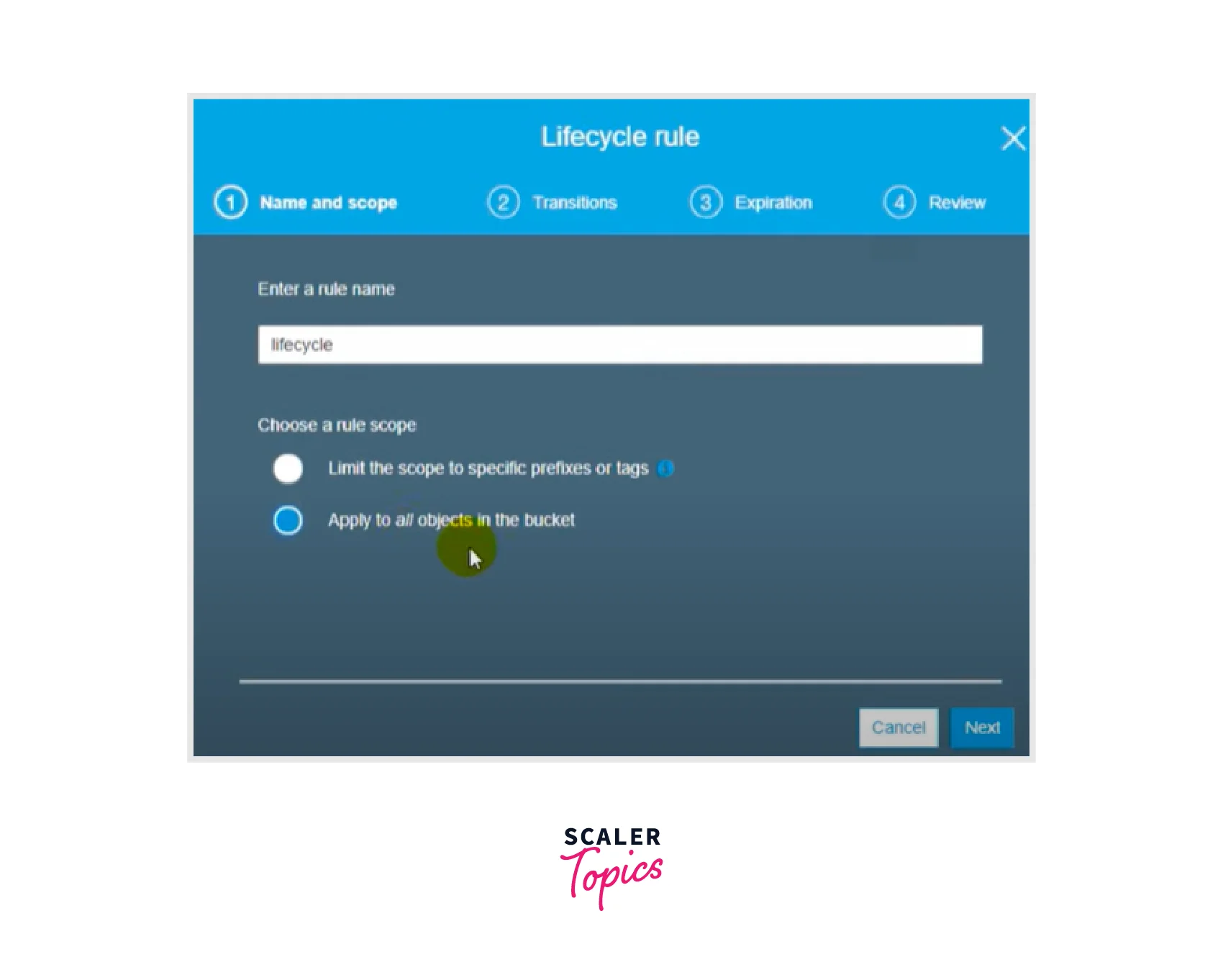- Define the AWS S3 Lifecycle Policy rule's scope: