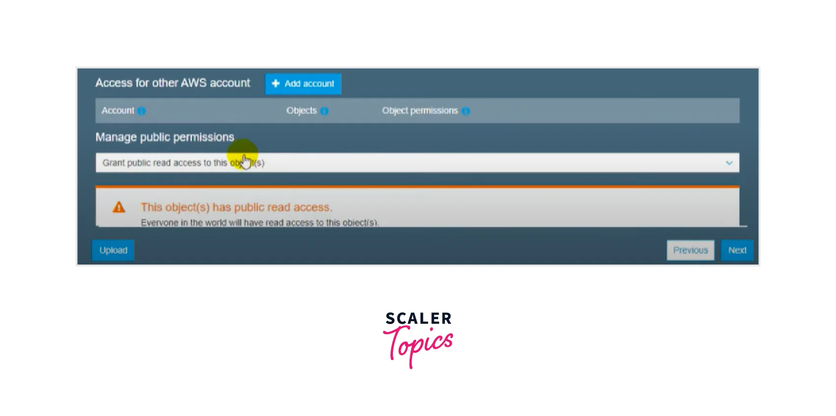Step 2: Make a bucket since it is applied to the bucket rather than a single item or complete storage.