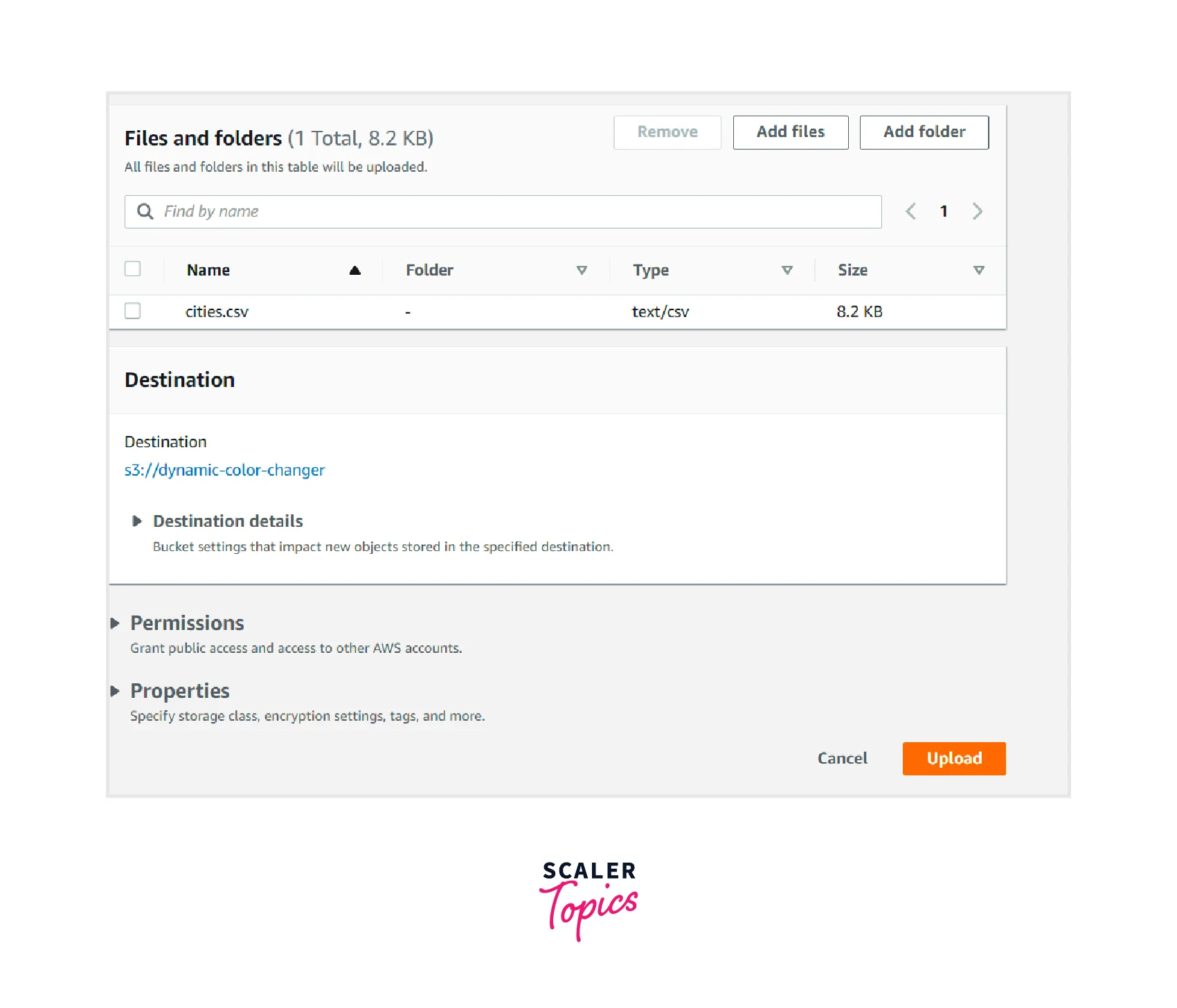 CSV file uploaded to an S3 bucket AWS account with Lambda, IAM, and S3 access.