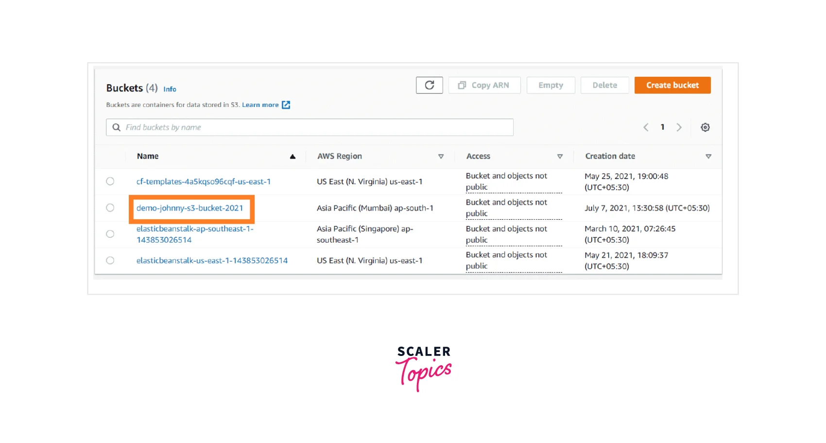 - Now that we created our first S3 bucket, select this S3 bucket name to open it. As shown below, we are now heading to enable the versioning on these buckets.