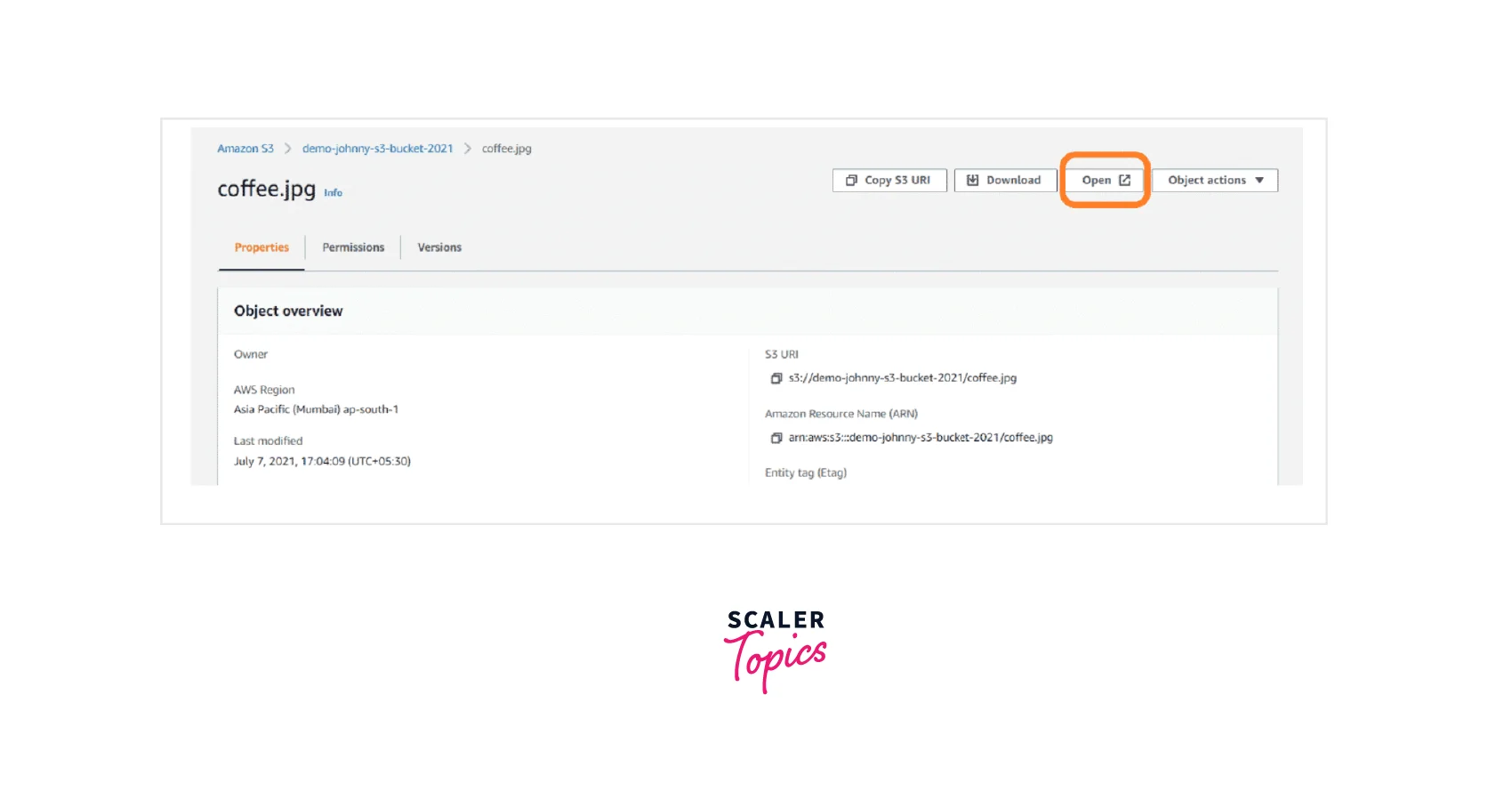 You can also leave the rest of the settings as default, and upload the image in the S3 bucket. Once uploaded you can 'Open' the image to double-check if it is properly updated as shown below.