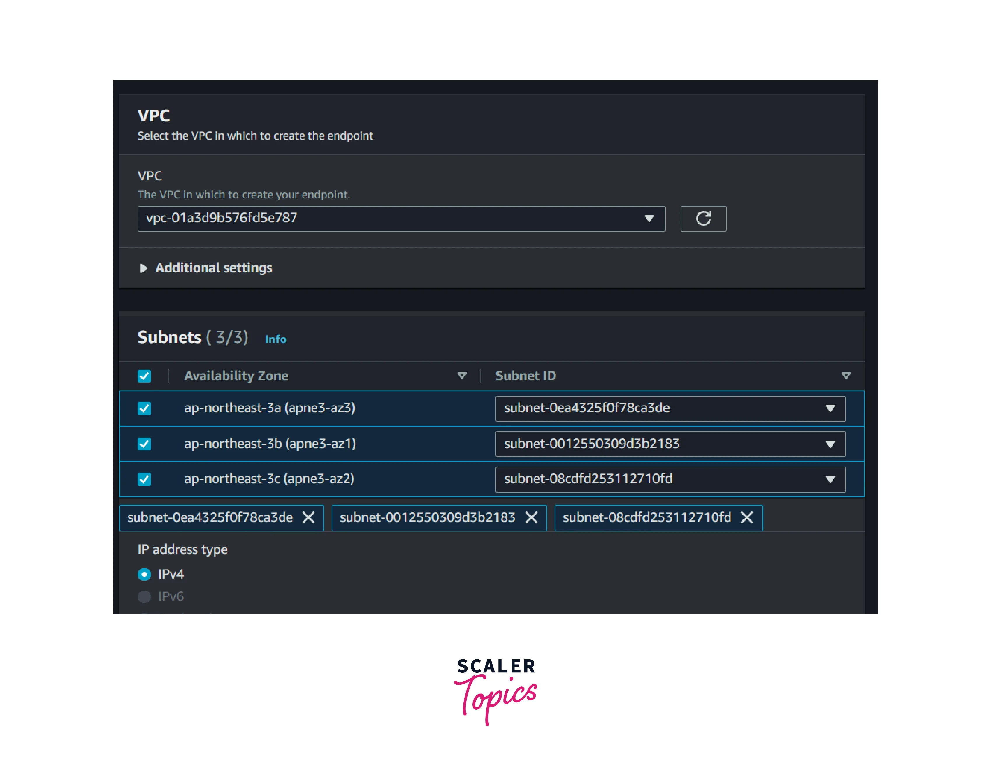 - If the customer selects two subnets in the same availability zone, then interface VPC endpoints will be created in two availability zones.