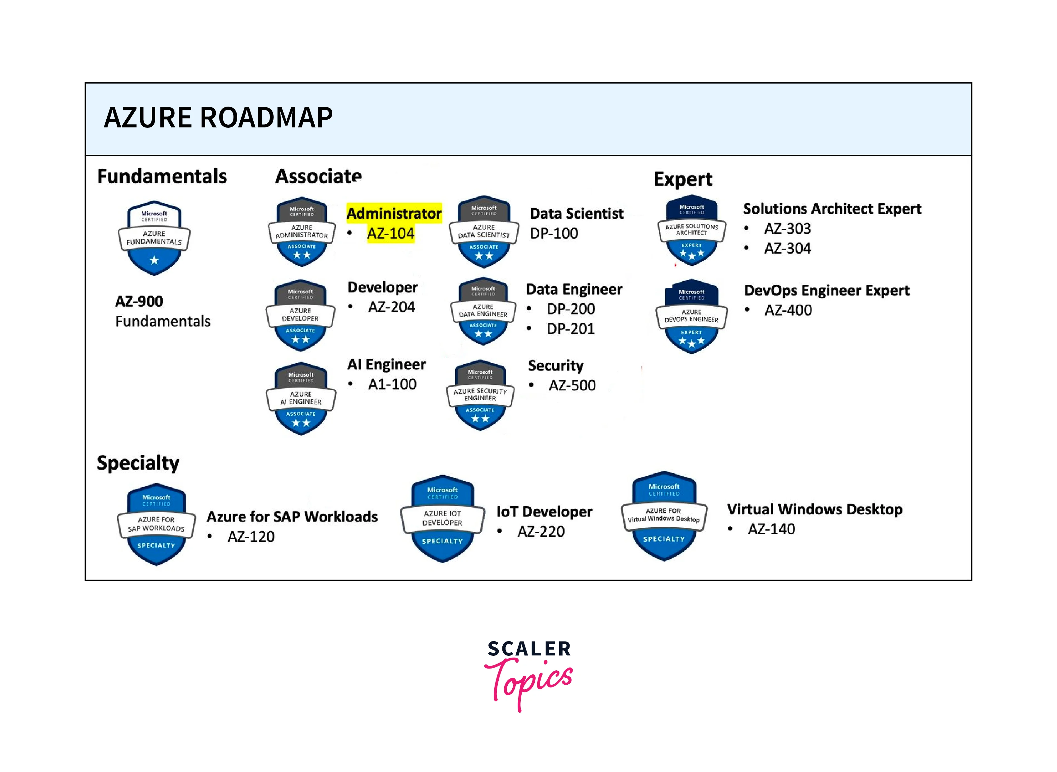 The AZ-104 certification covers several domains related to Azure administration: