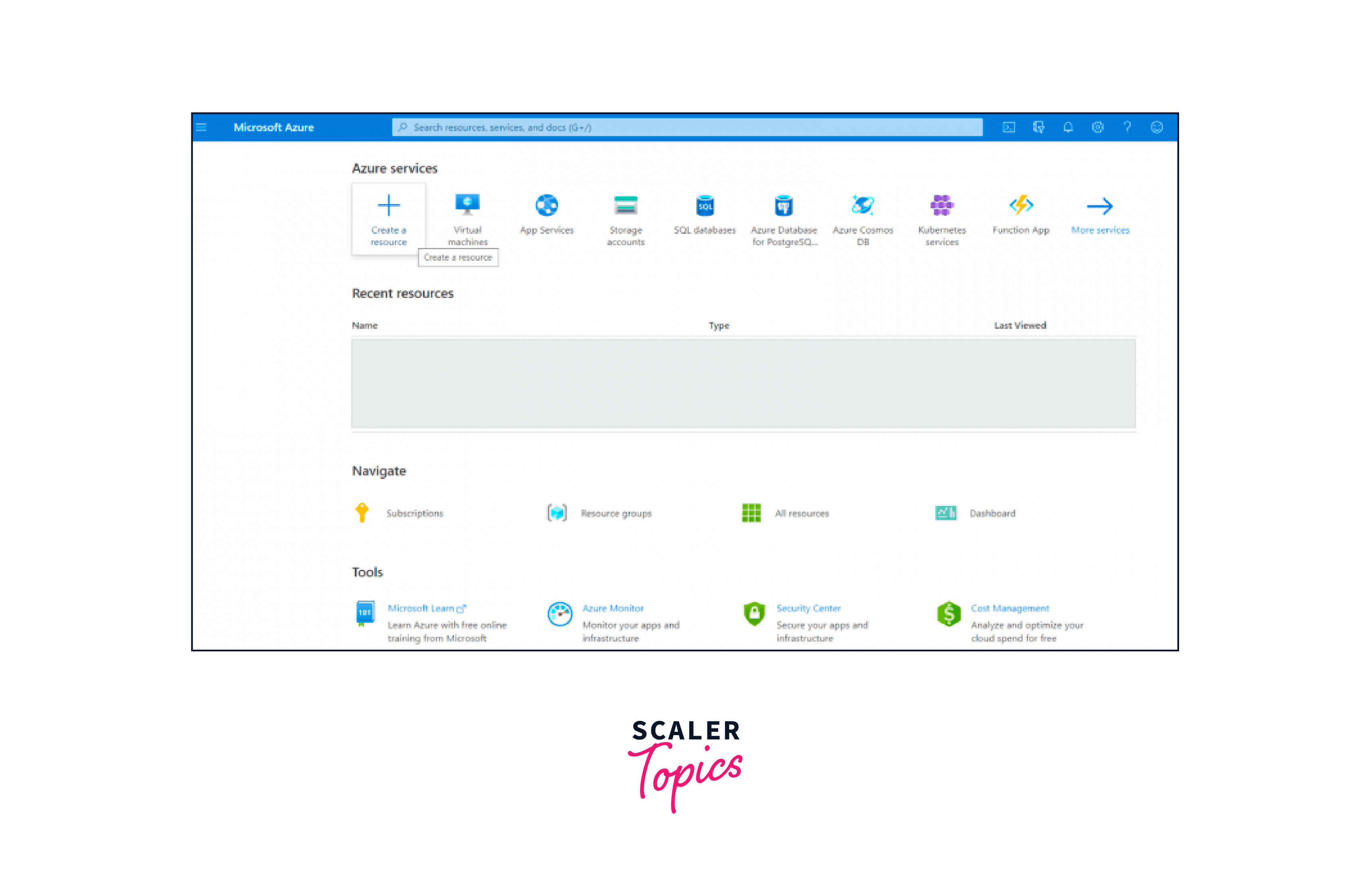 - Navigate to Azure Services and select the "+ Create a Resource" button.