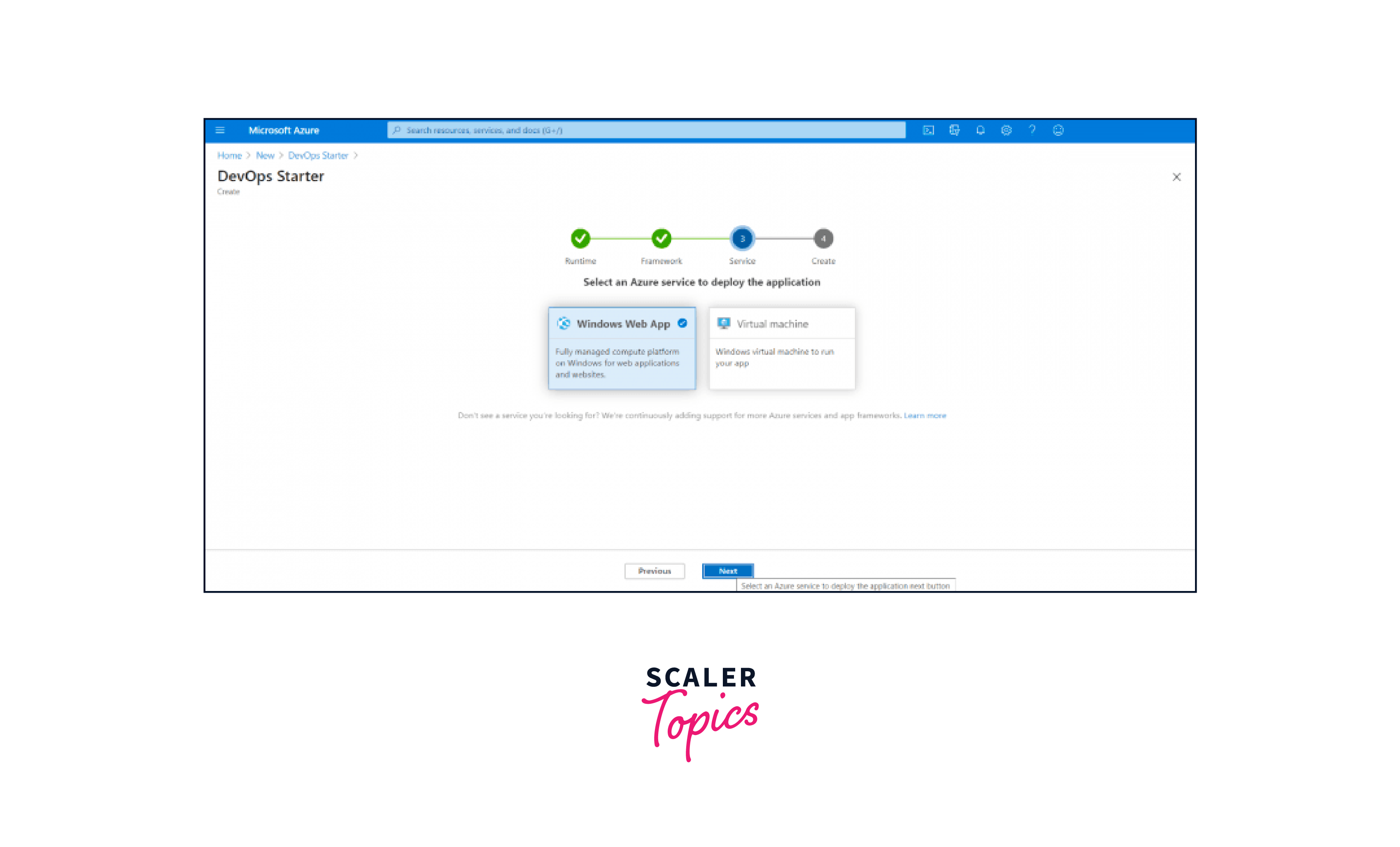 - While the default is Windows Web App, you have the flexibility to choose a Virtual Machine.