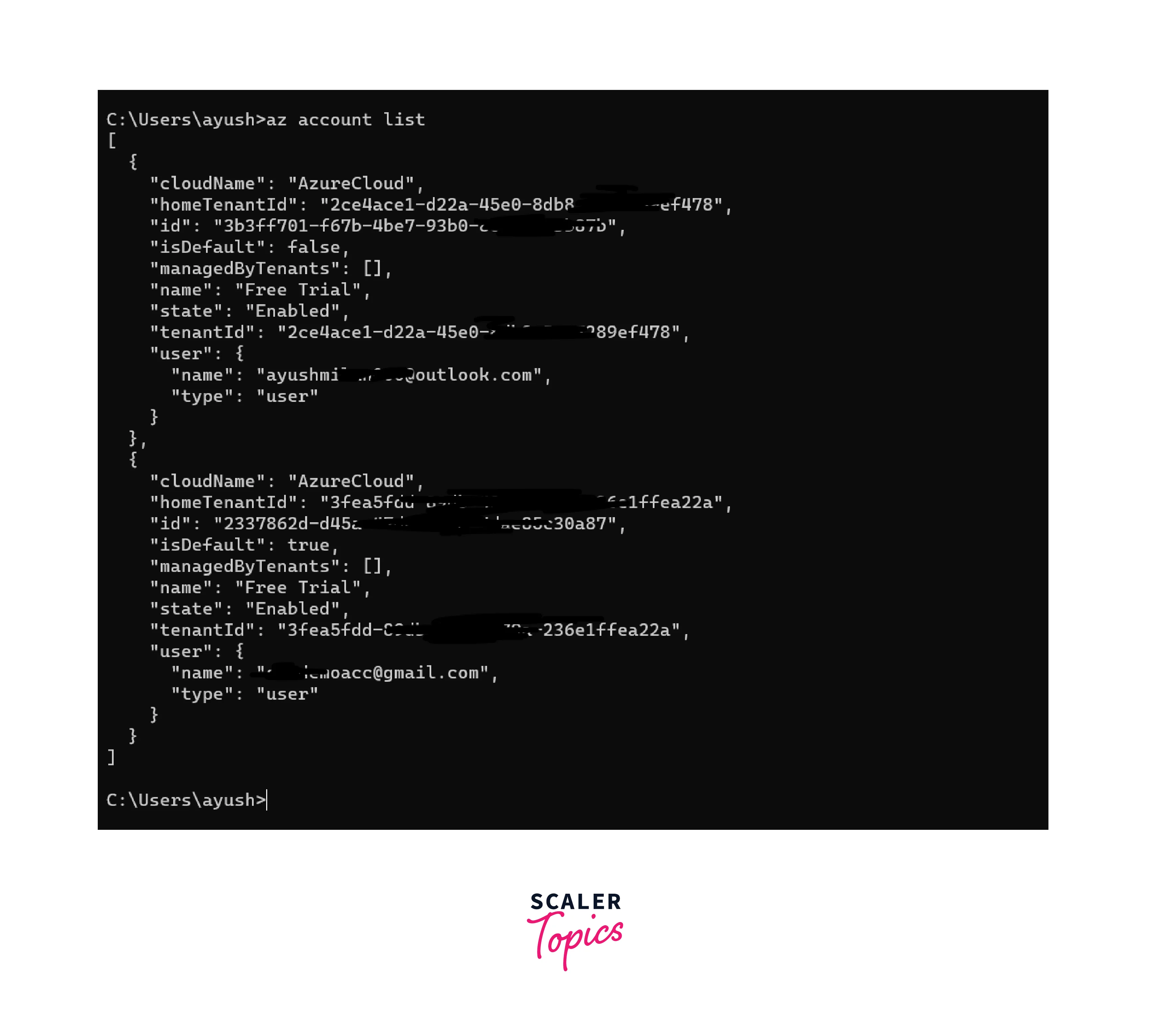 Type the az account command with the -h flag to see the list of subcommands you can use.