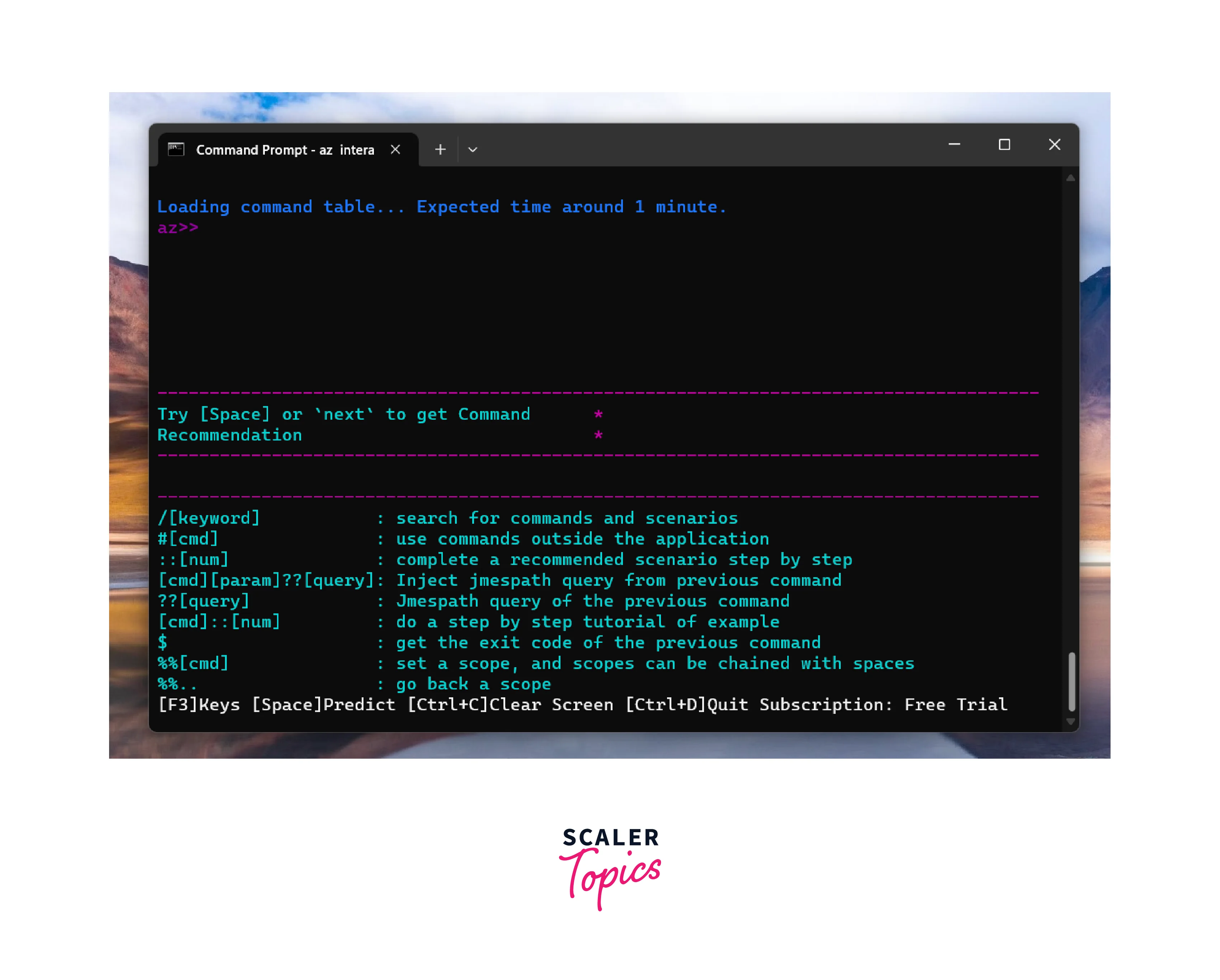 - To enter interactive mode, simply type az interactive in the command prompt.