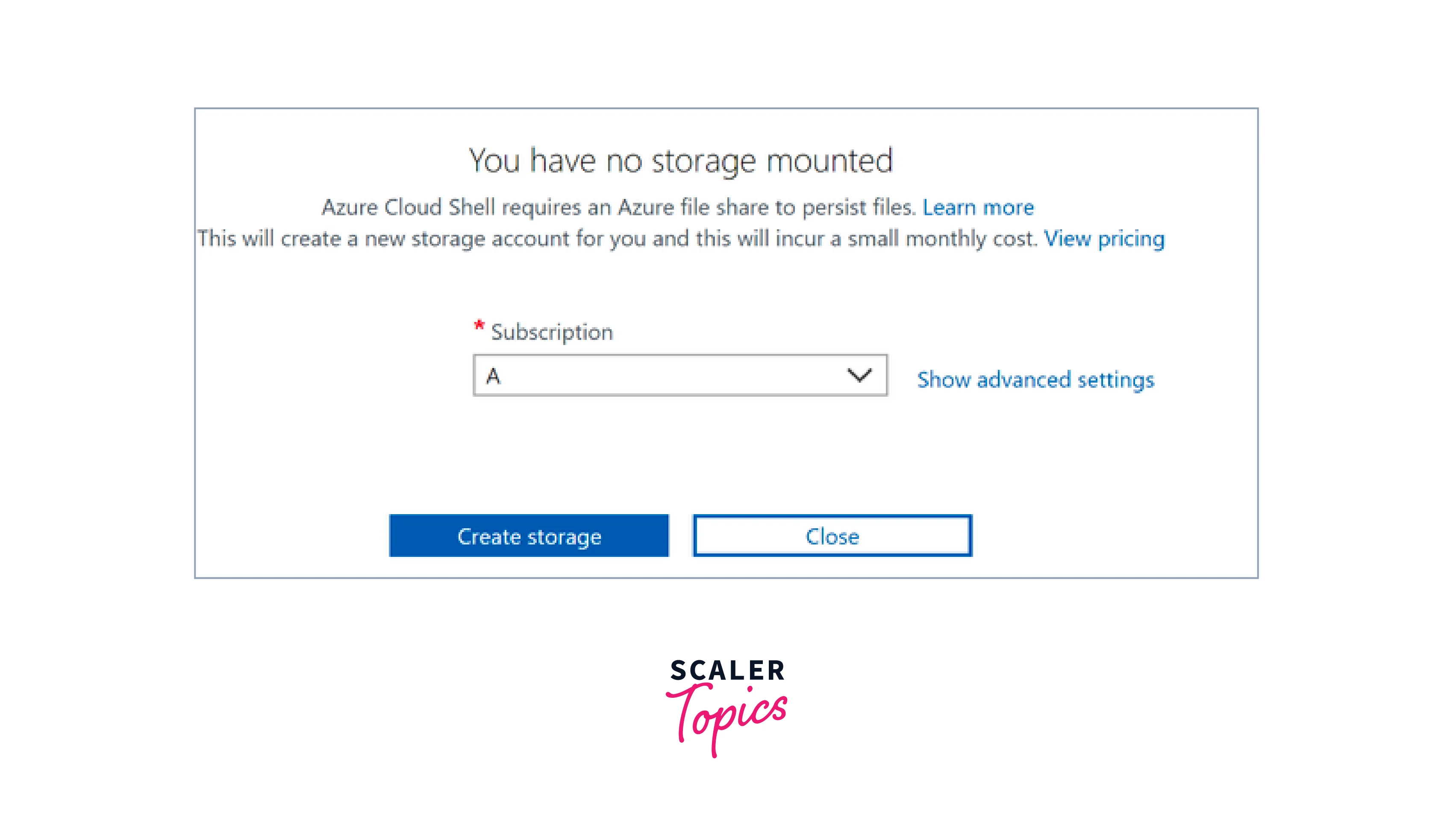 - If it's your first time using Azure Cloud Shell, you'll need to set up a storage account to store your shell environment data. Follow the on-screen prompts to create a storage account (if required).