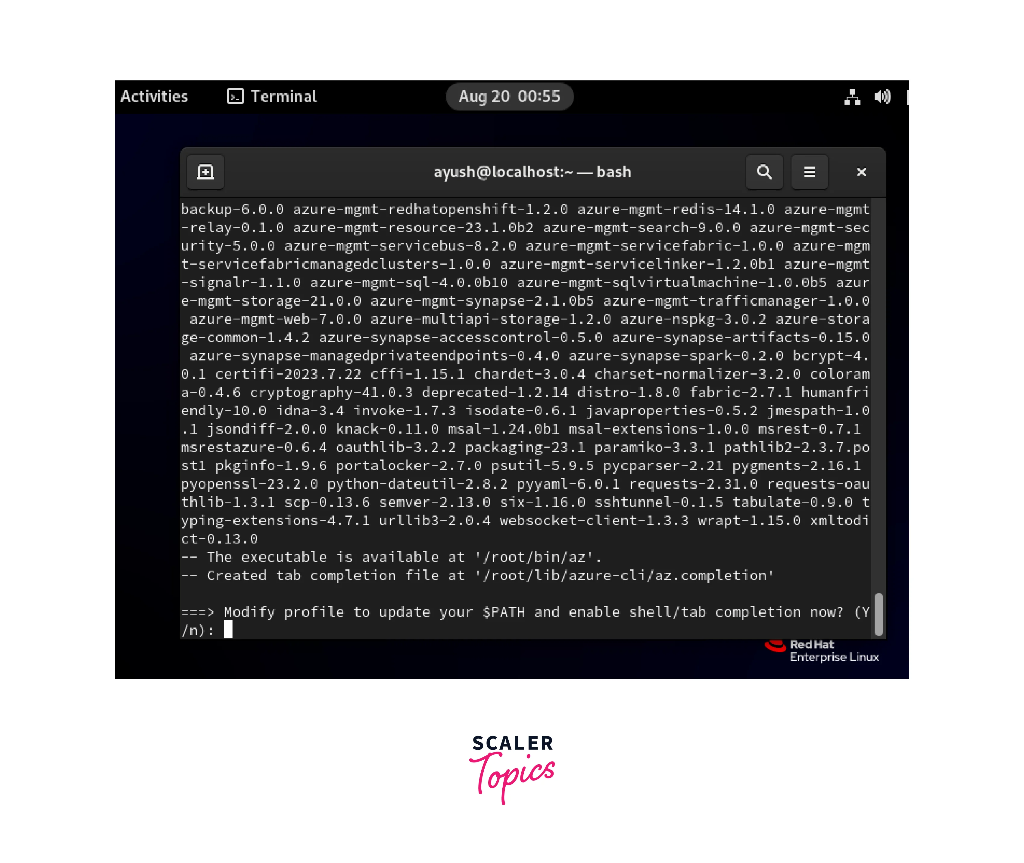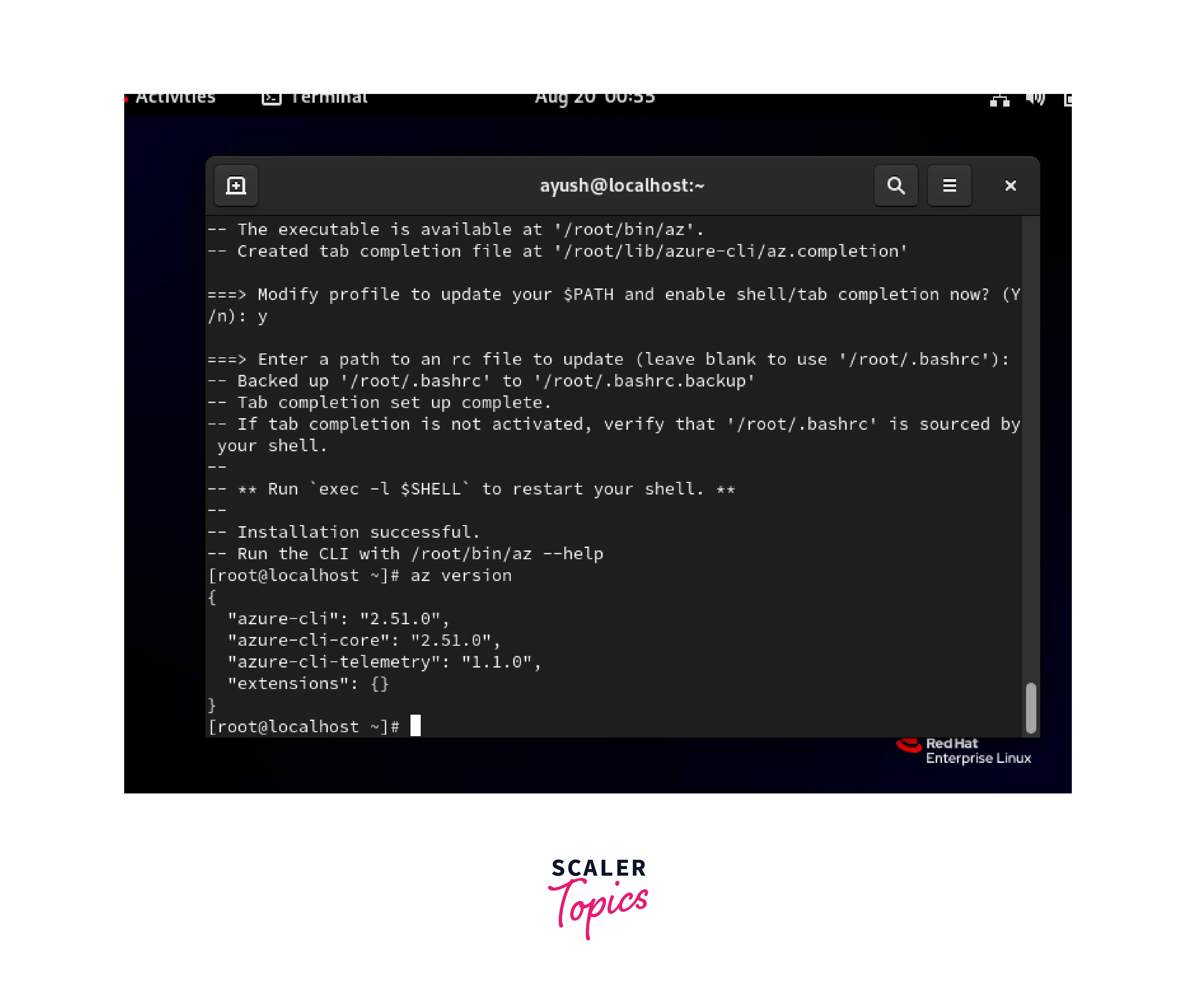 - It will finish the installation of Azure CLI. Now you can check the Azure CLI version using the az version command.