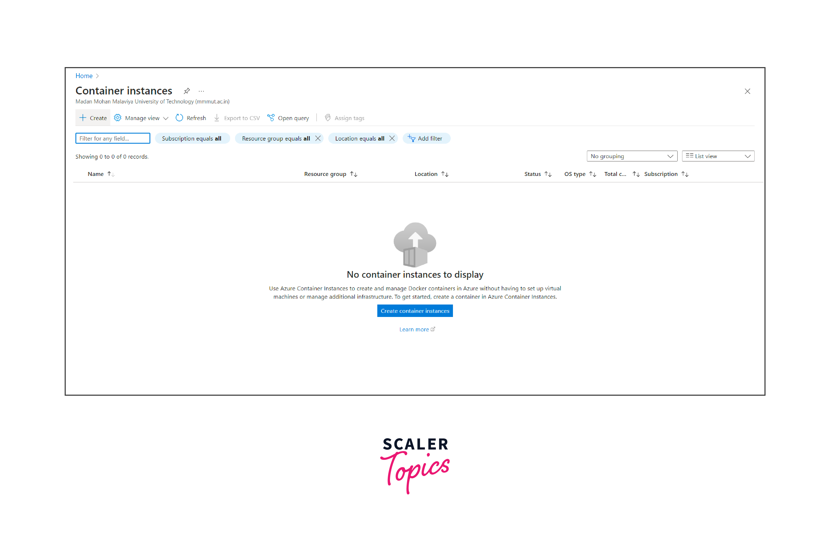 - To create an Azure container instance, firstly log in to the Azure portal with valid Azure login credentials.