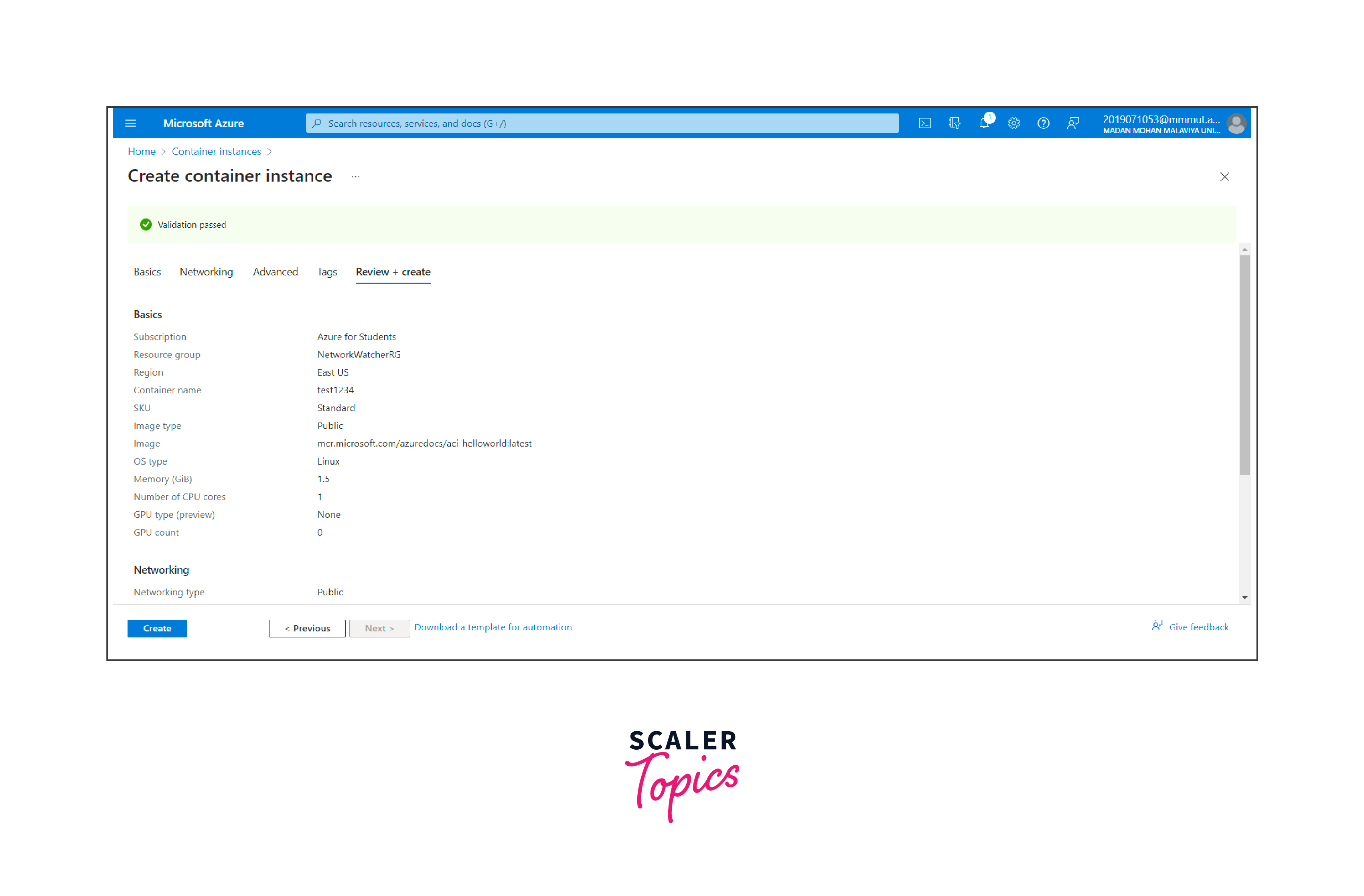 - Network Integration: ACI supports integration with Azure Virtual Networks, allowing you to control network access and communication.