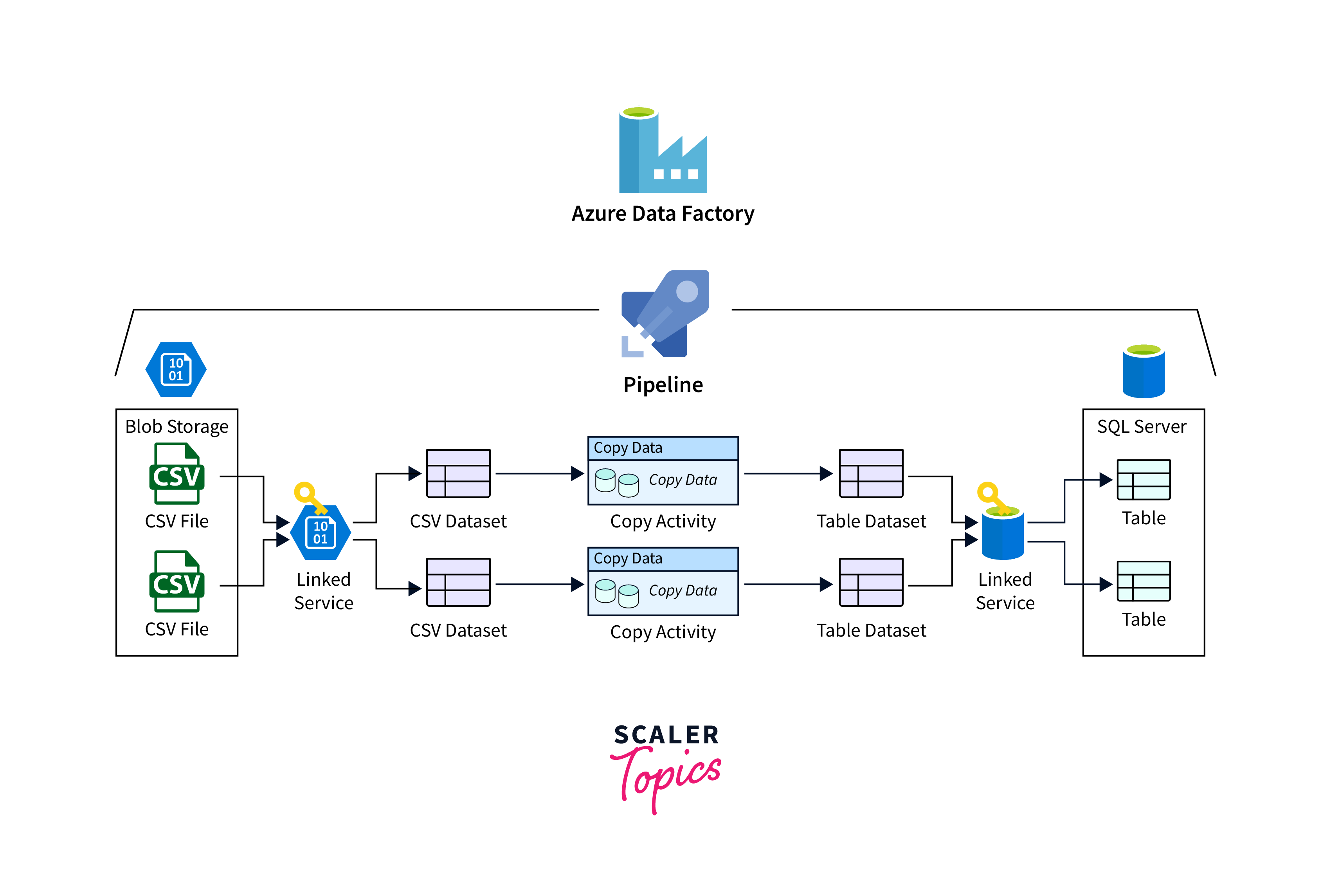 - Data Pipelines: Azure Data Factory allows you to create data pipelines that define the flow of data from source to destination. Pipelines consist of a series of activities that perform tasks like data extraction, transformation, and loading. These activities can be orchestrated to create complex workflows.