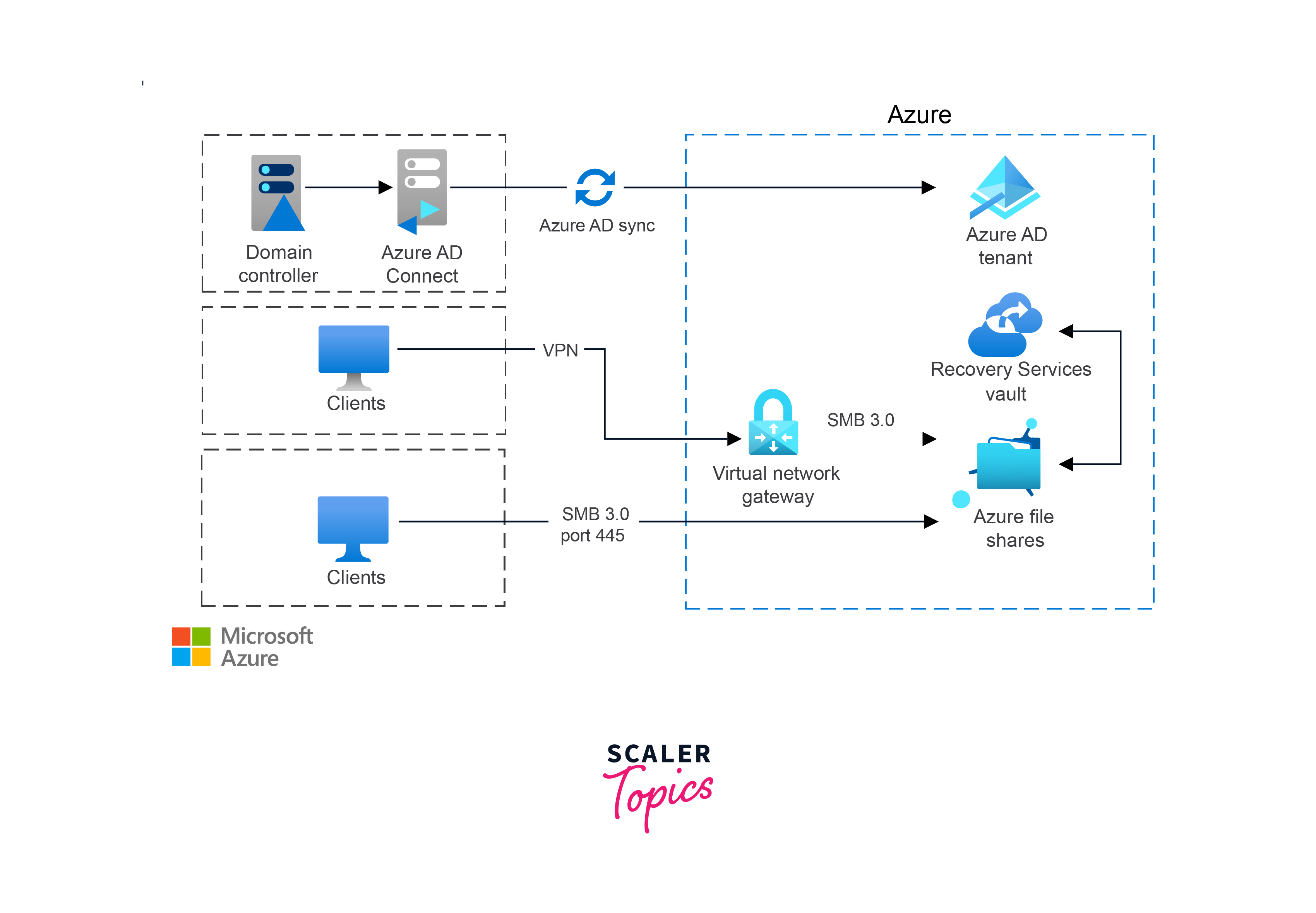 - Encryption: Data in transit and at rest is encrypted, protecting it from unauthorized access. This includes encryption of files in transit using SMB encryption and encryption at rest using Azure Storage Service Encryption.