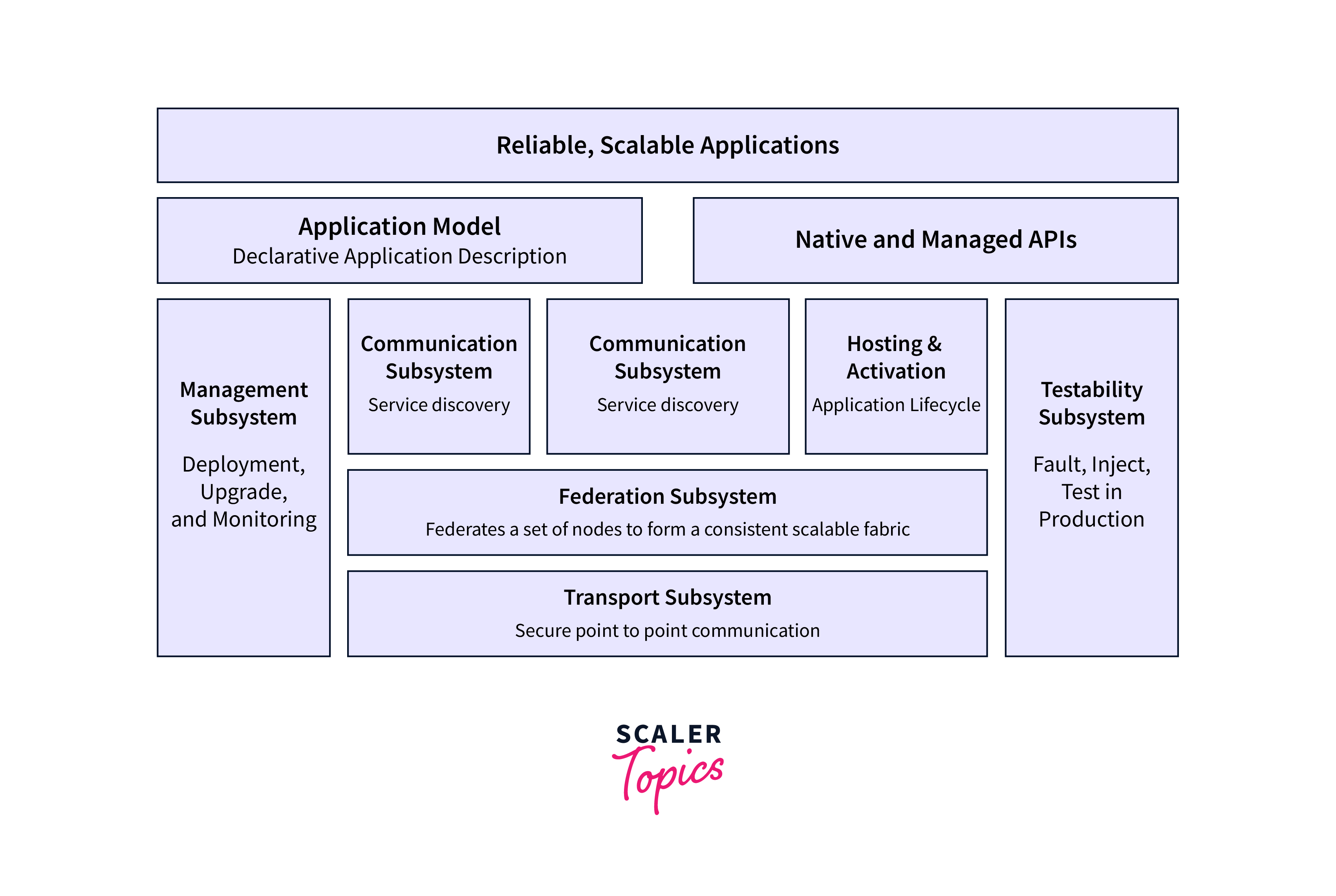 Azure Service Fabric architecture is designed to provide a robust platform for building and deploying complex and highly available applications. It simplifies the development, deployment, and management of distributed systems by abstracting away much of the underlying infrastructure complexity. The architecture is centered around microservices, stateful services, and built-in features that ensure reliability, scalability, and flexibility.