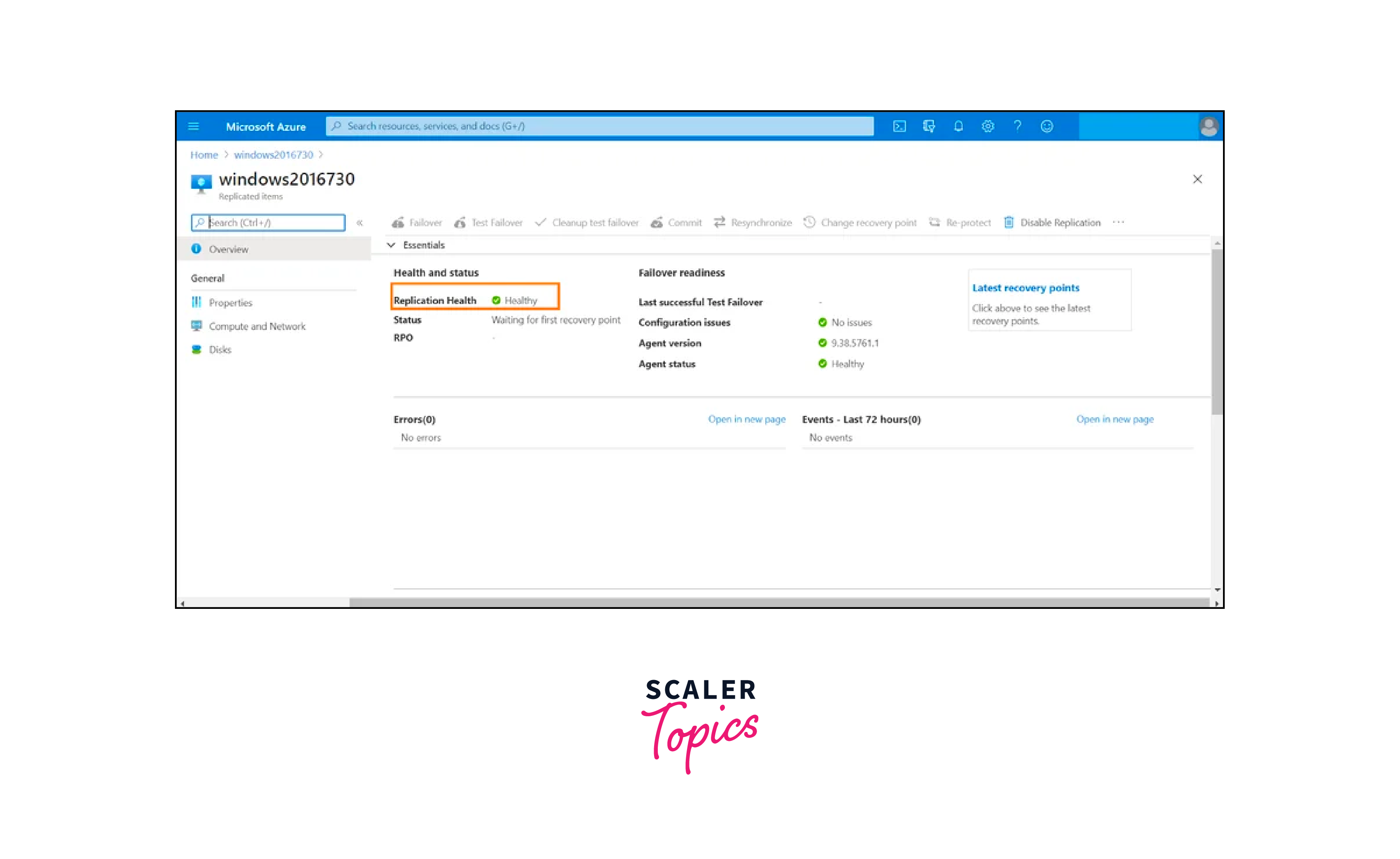 - Management: Organizations can use the Azure portal to manage and monitor their replication settings, recovery plans, and ongoing replication health. The portal offers a centralized view of replication progress, failover history, and configuration details, enabling administrators to make informed decisions.