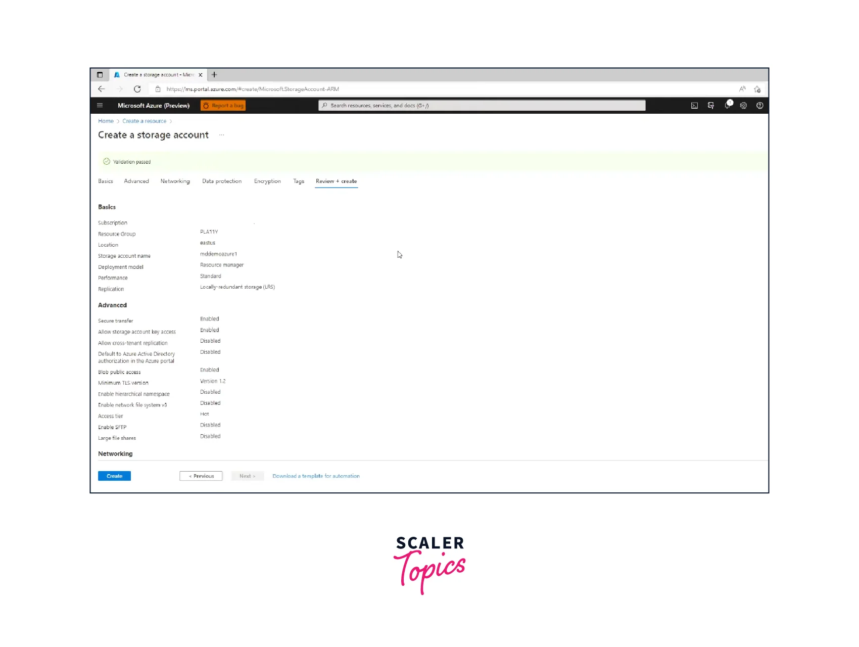 - Replication: Choose the replication option that meets your data redundancy and availability requirements (LRS, GRS, etc.).