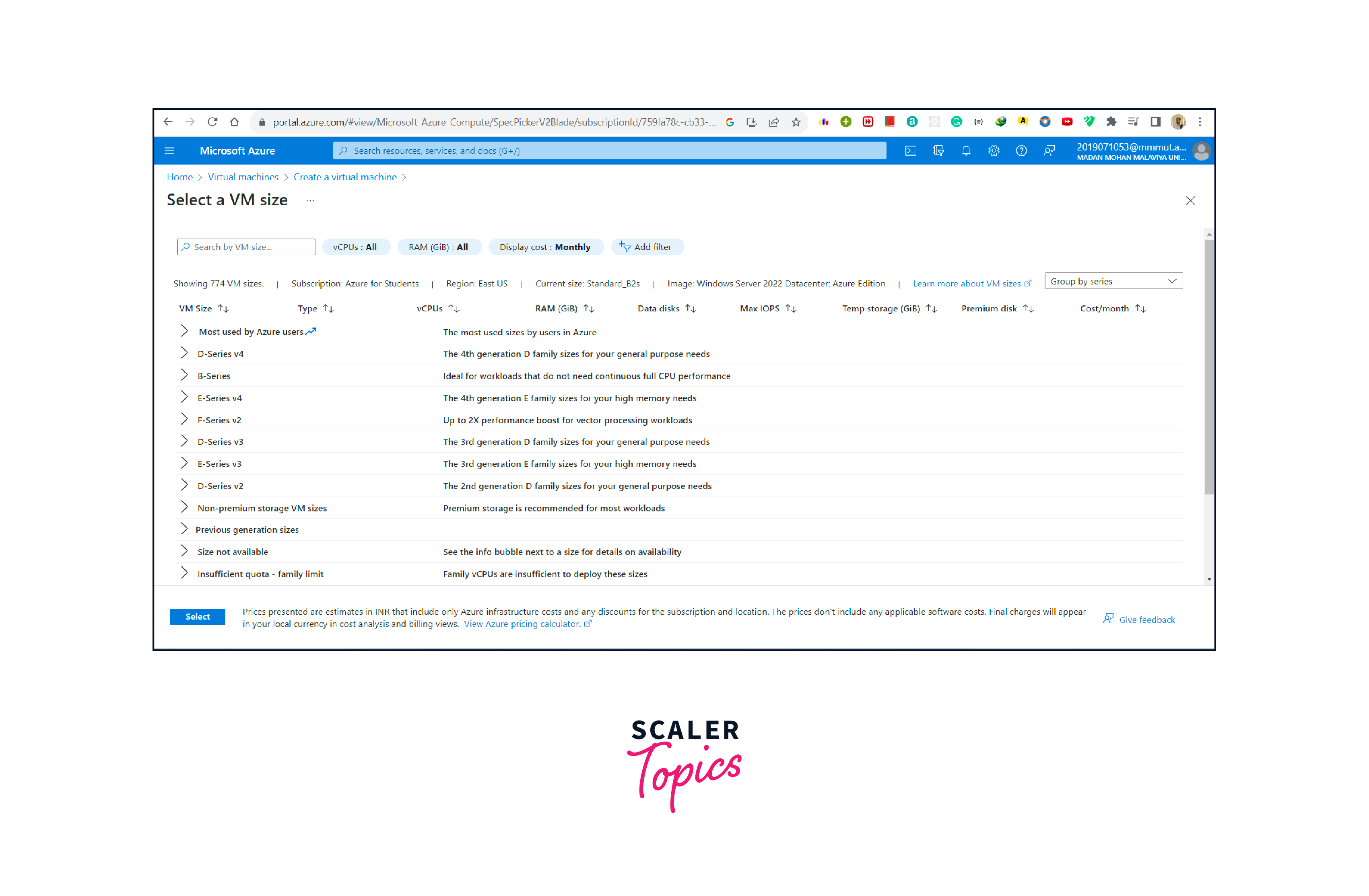 - The first capital letter in the VM name represents the family. For example, in D4ads_v5 VM, the letter D represents that this VM belongs to the D-Series.