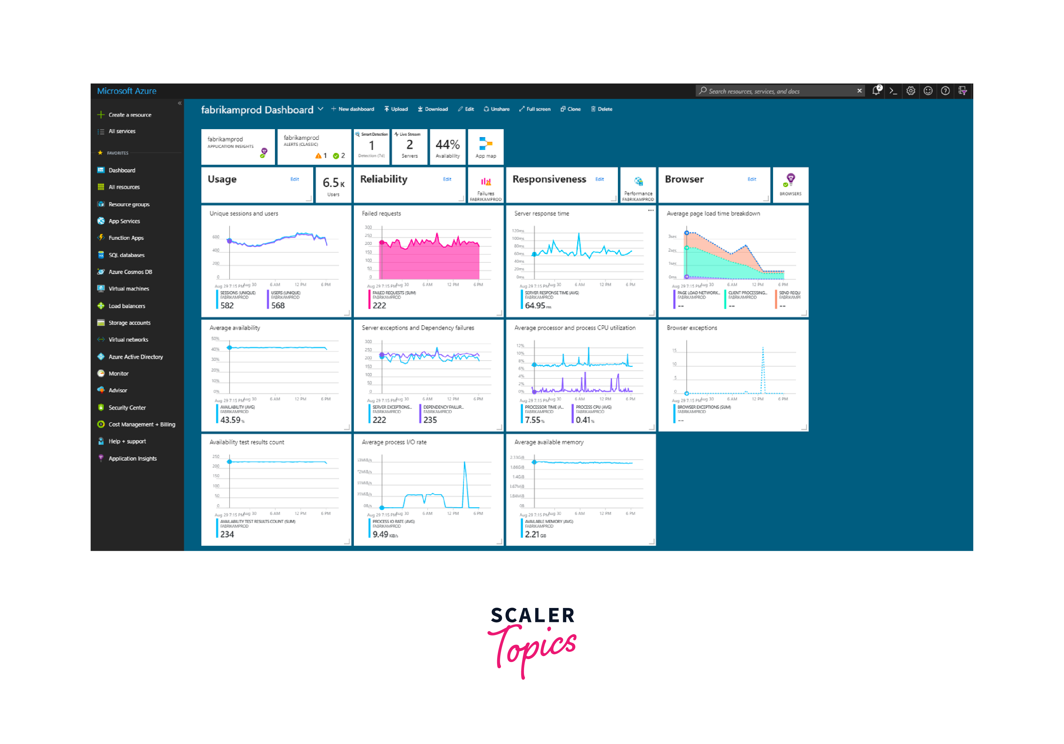 - Response Times: Application Insights measures how long it takes for different parts of your application to respond to requests. For example, it can show you the time it takes for a web page to load.