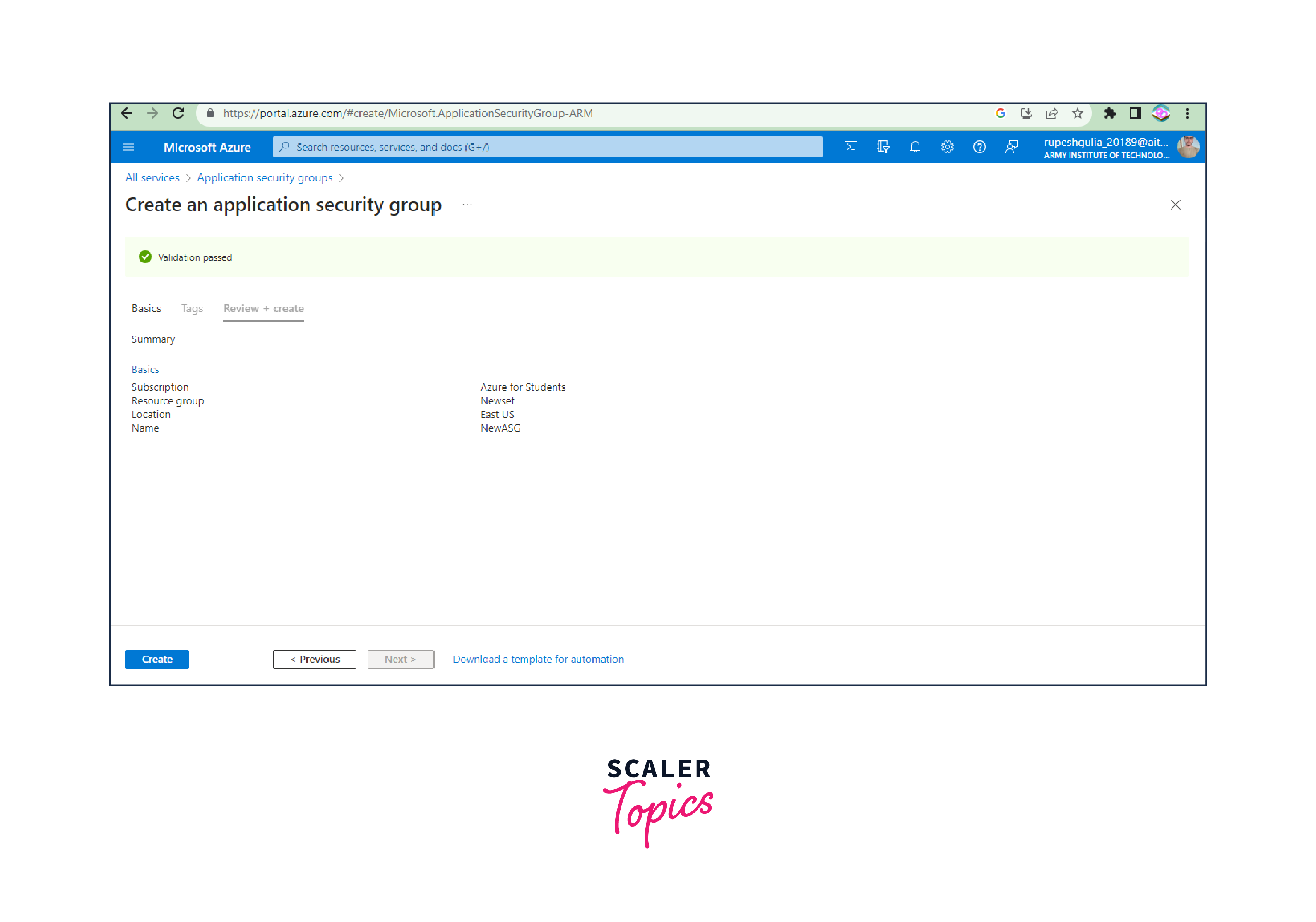 - Subscription: Choose the Azure subscription in which you want to create the ASG.