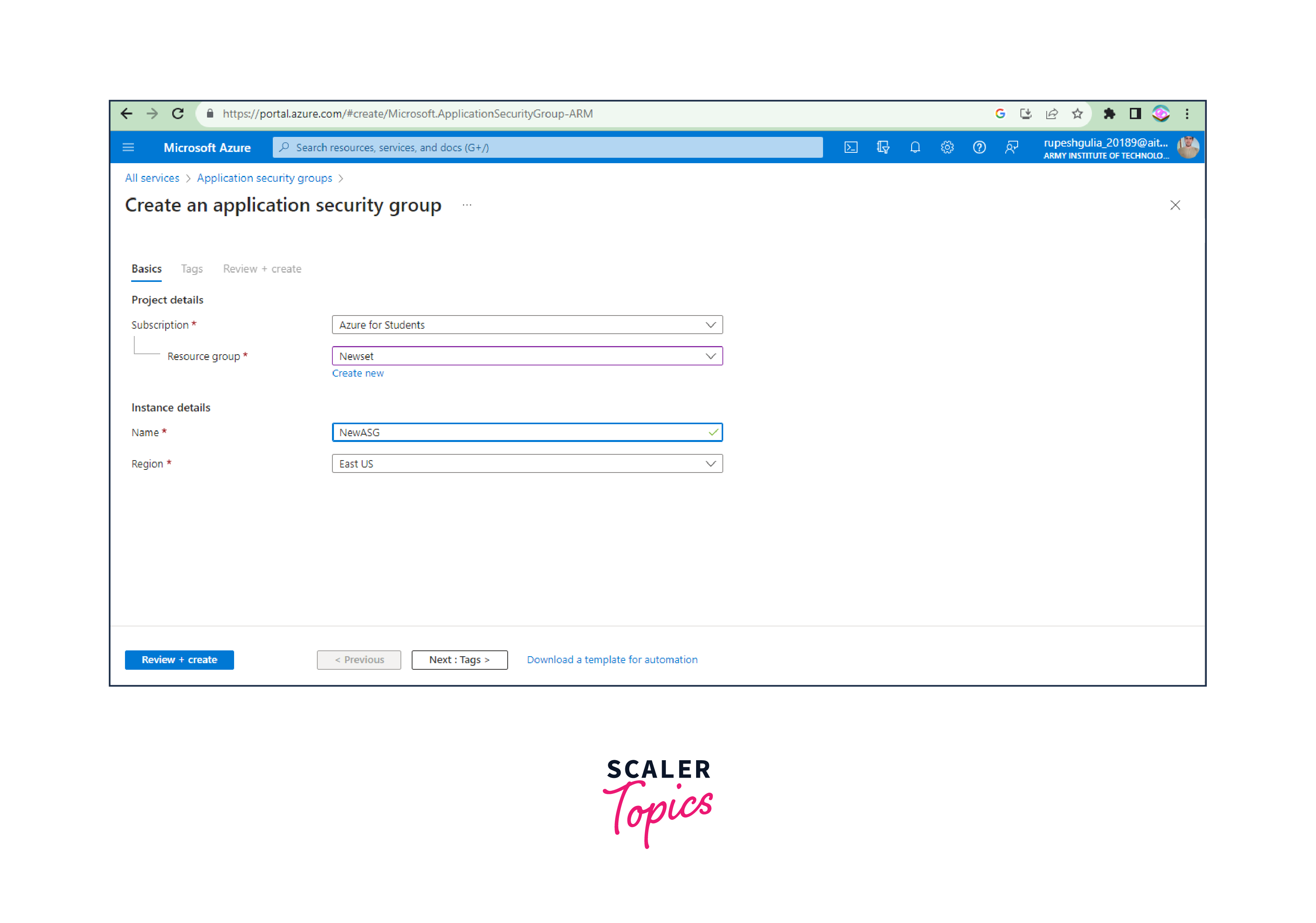 - Resource group: Select an existing resource group or create a new one to contain the ASG.