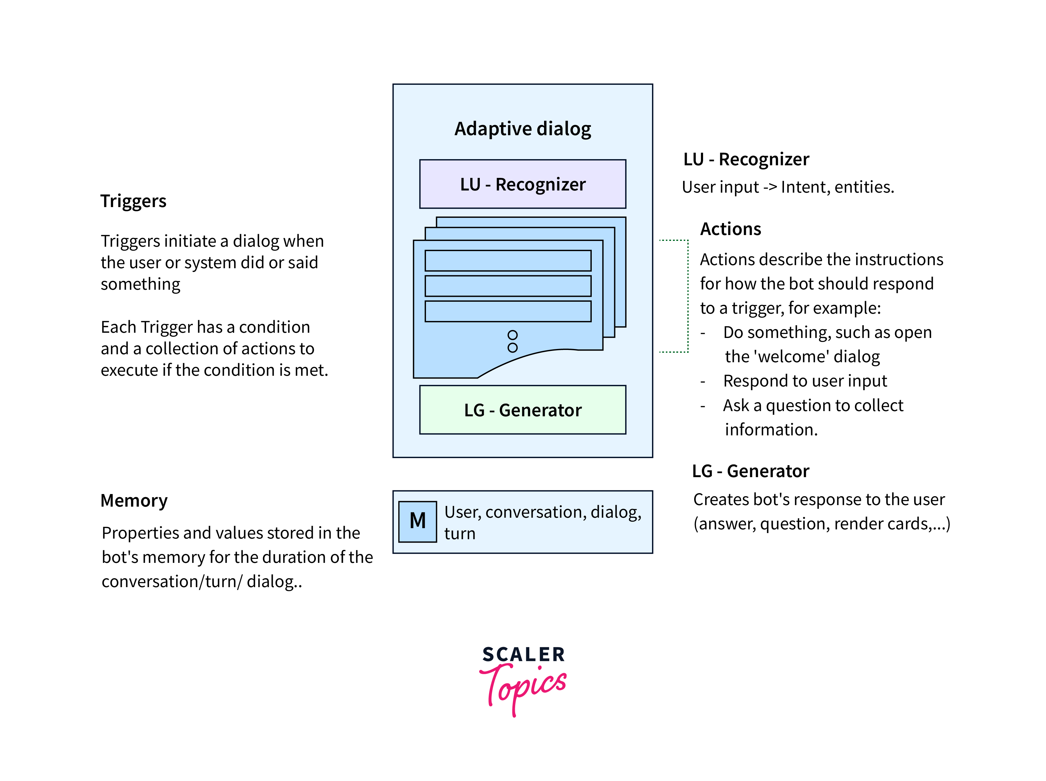 - Dialogs manage the flow of conversations, enabling the bot to respond appropriately based on user input.