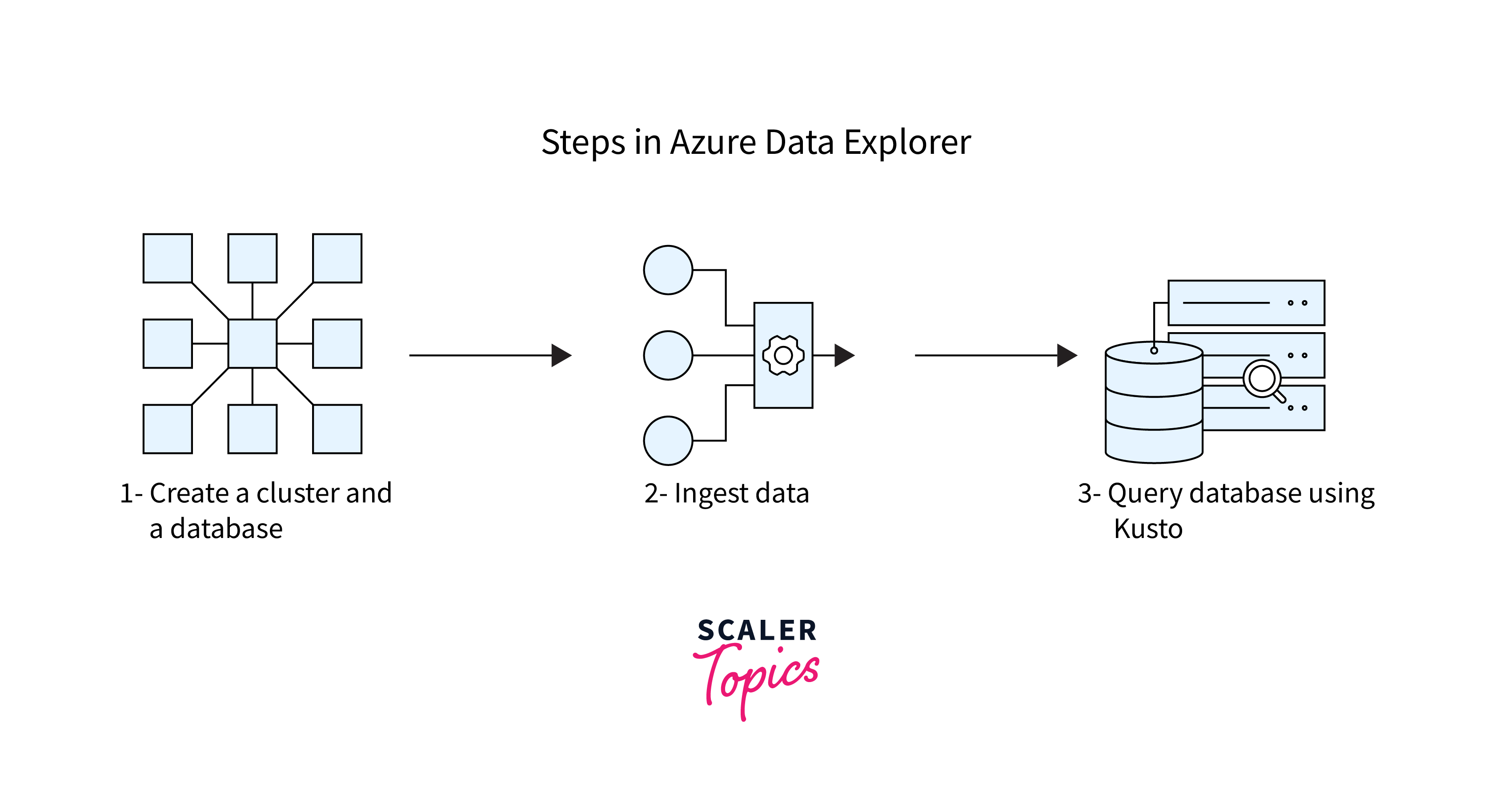 Azure Data Explorer service essentially embarks on three pivotal steps, as illustrated in this diagram: