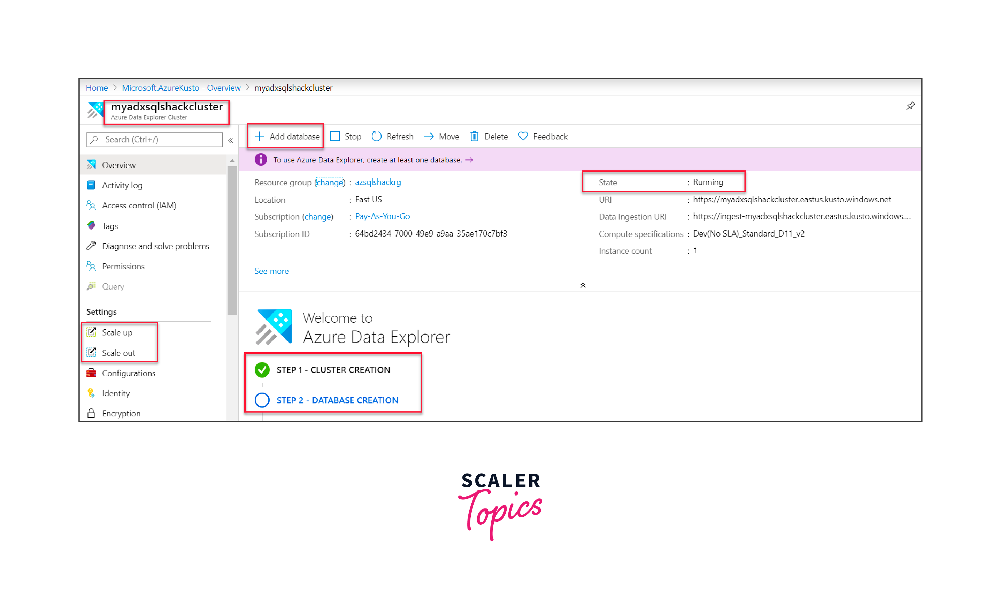 Your newly-created cluster, say "myadxsqlshackcluster", should now be operational. From here, you have the flexibility to scale it based on your specific needs.