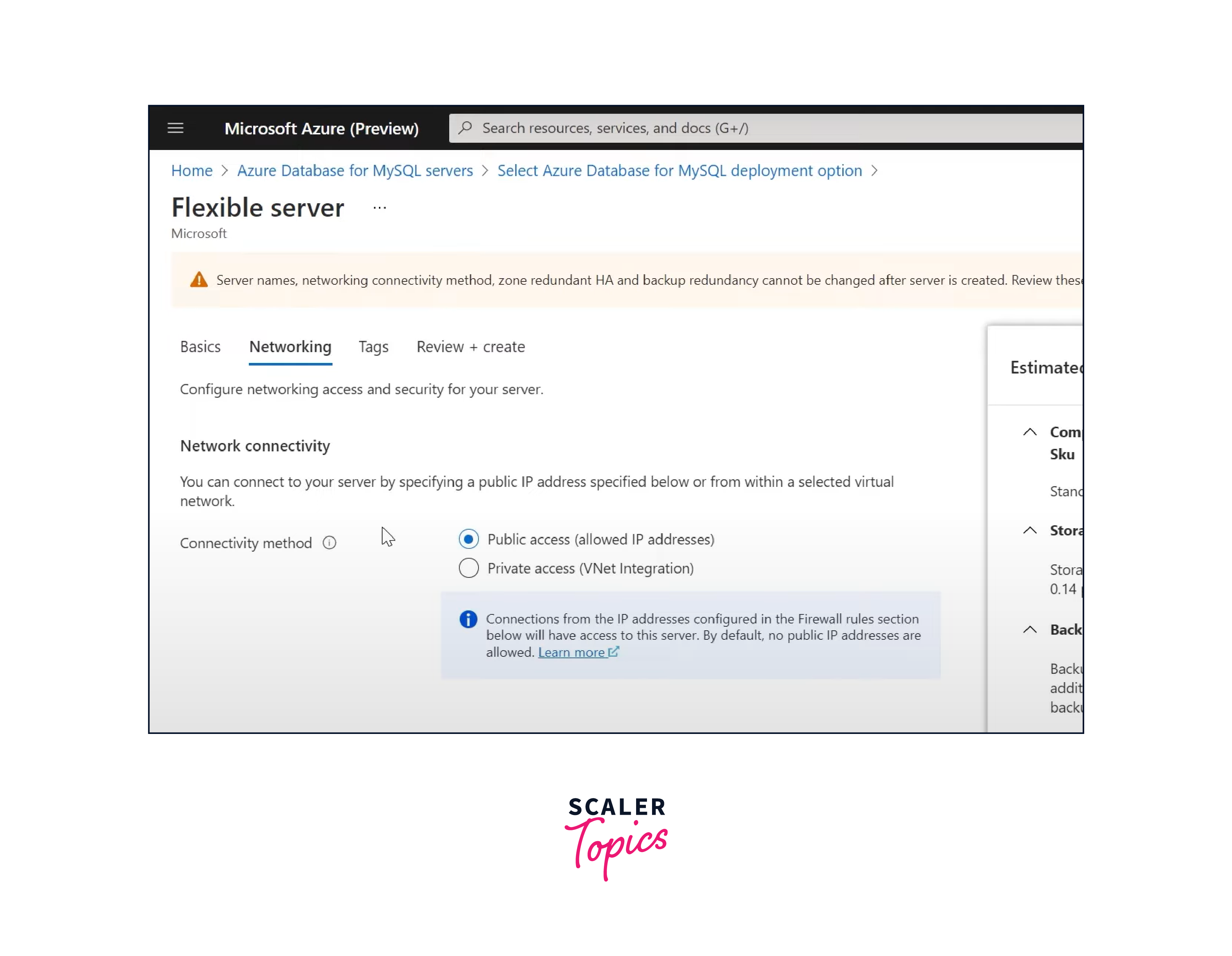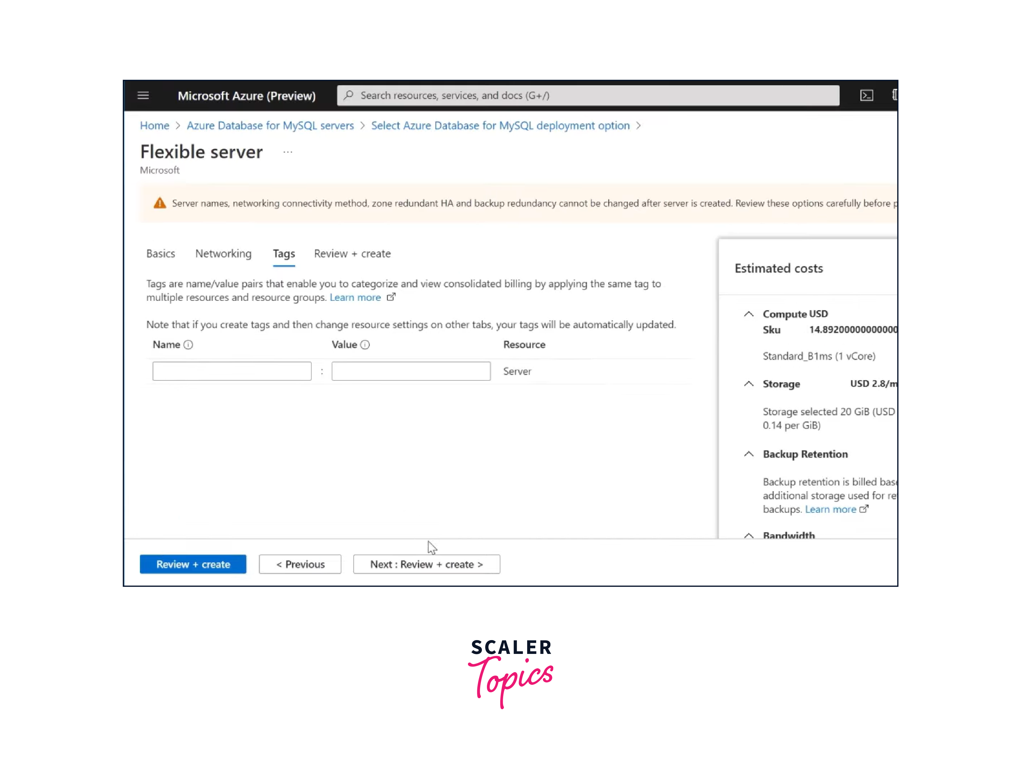 Configure additional settings like networking, backups, and tags.