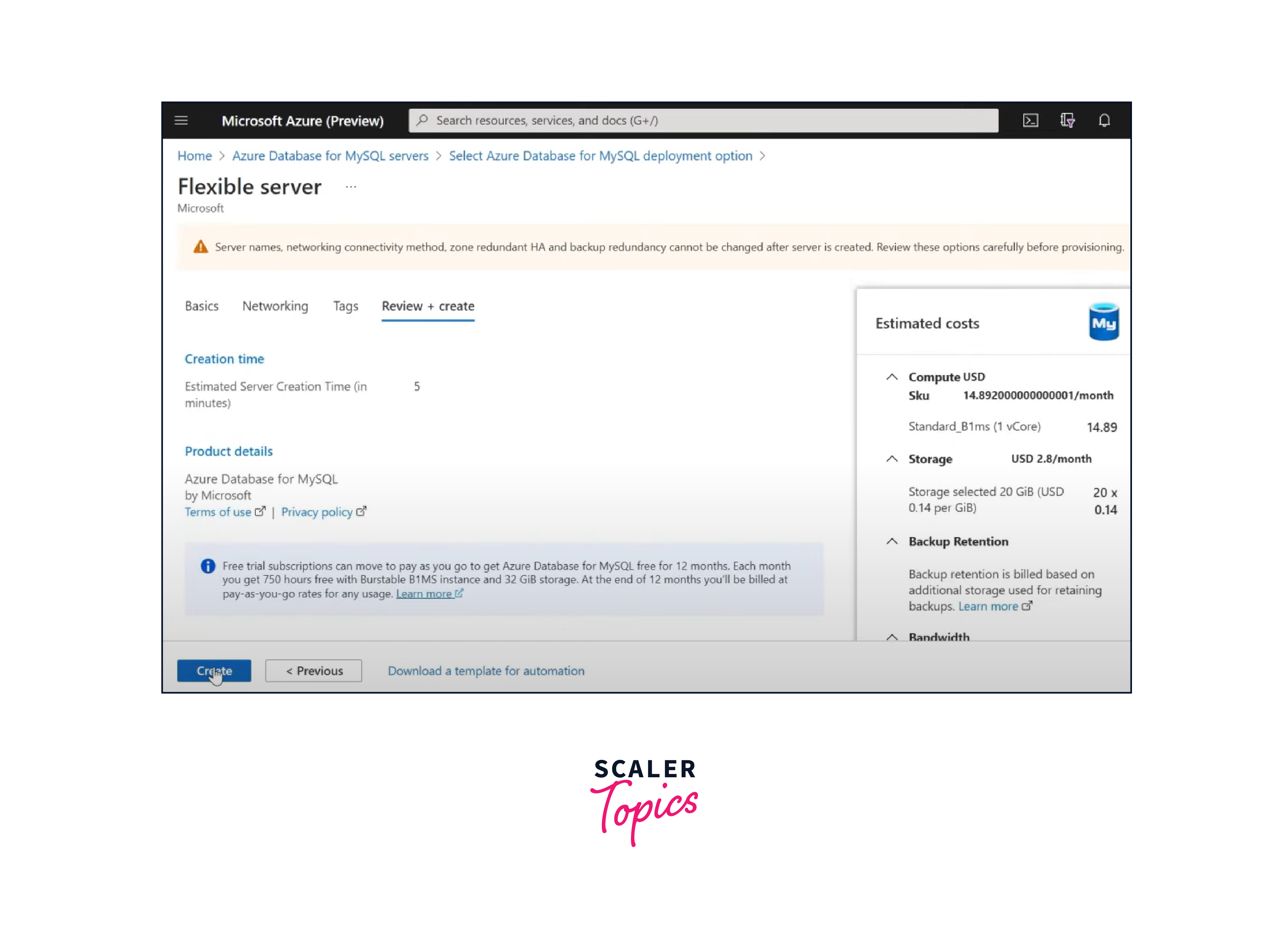 Create an Azure Database for MySQL:
