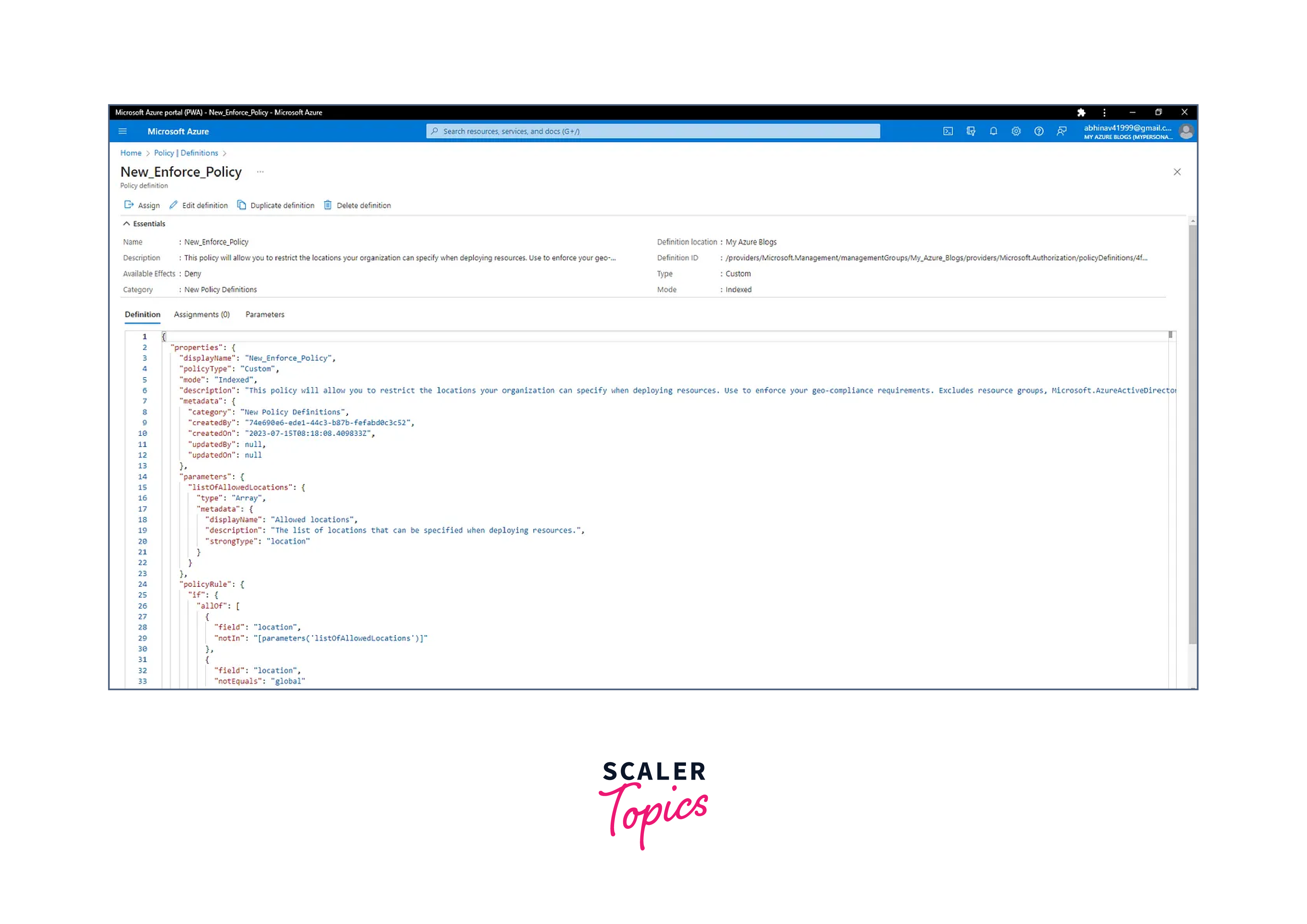 - Once you have selected or created a policy definition, assign it to your resources. Navigate to ‘Assignments’ in Azure Policy.