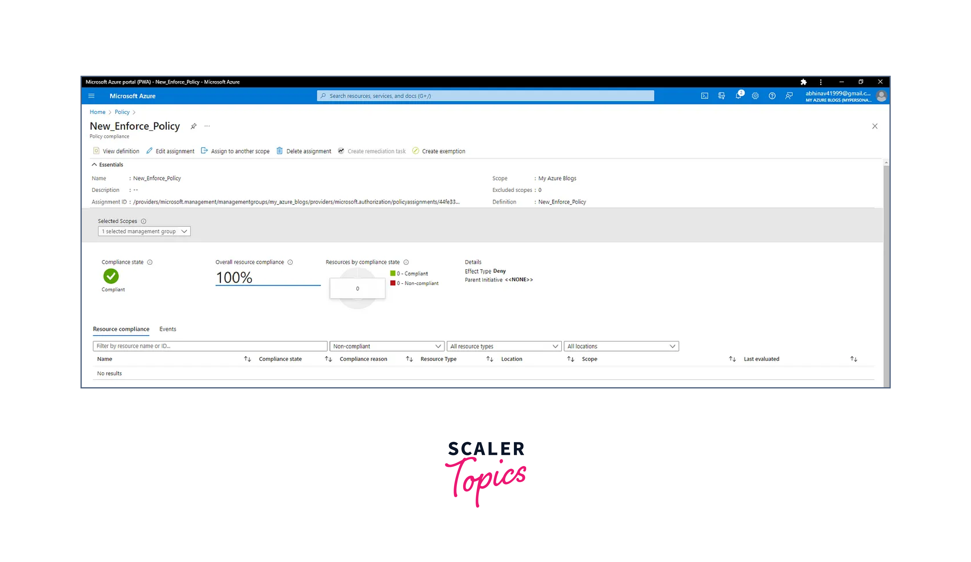 - After assigning policies, it’s crucial to review their impact. Use the ‘Compliance’ tab in Azure Policy to view the compliance status of your resources.