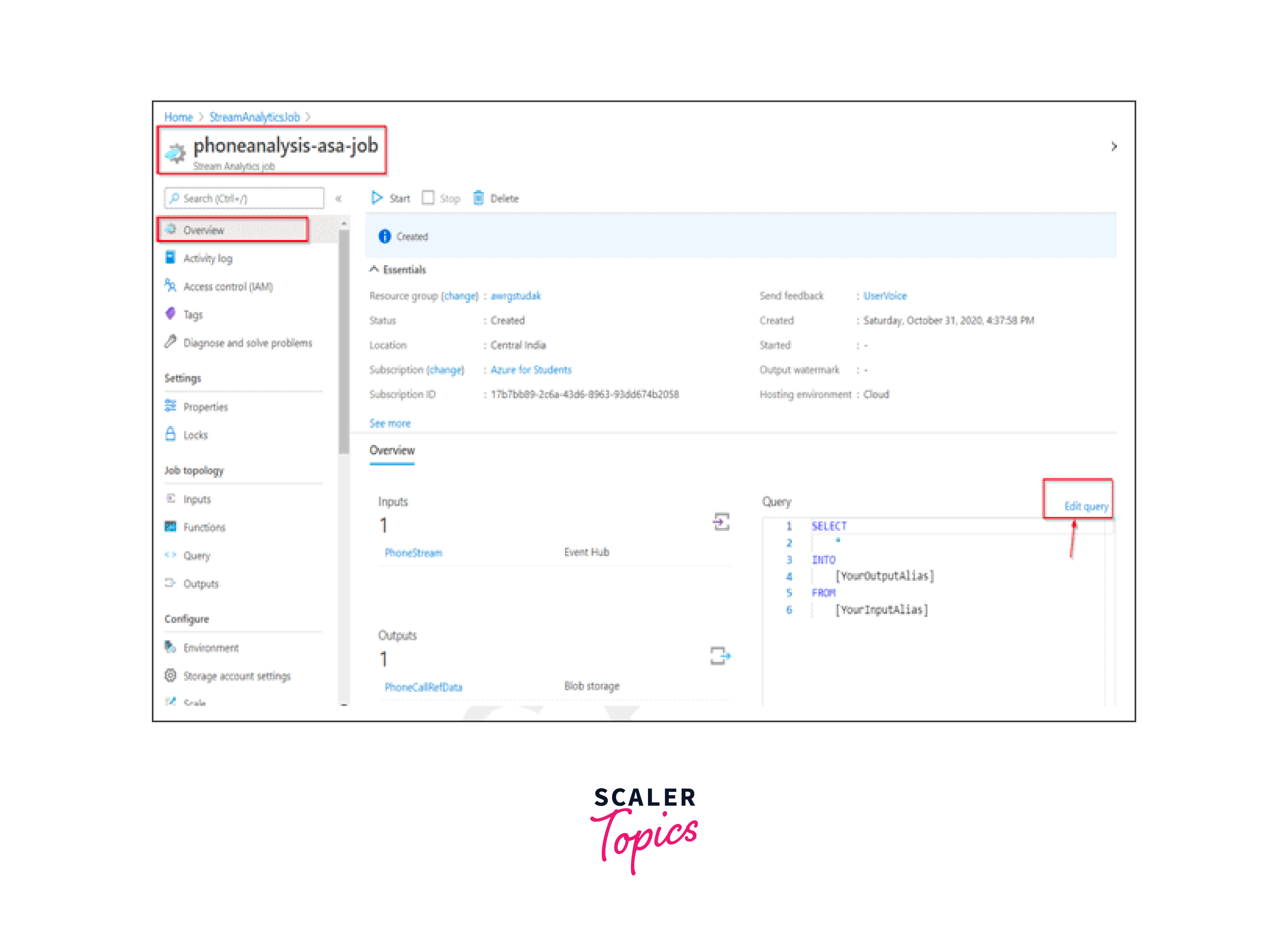 Within the central "Query" section of your "phoneanalysis-asa-job" interface, click "Edit query".