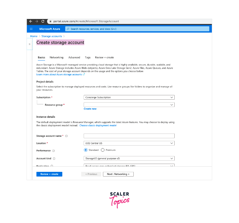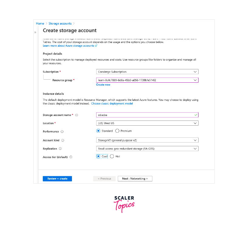 - Subscription: Choose the Azure subscription under which you want to create the storage account.