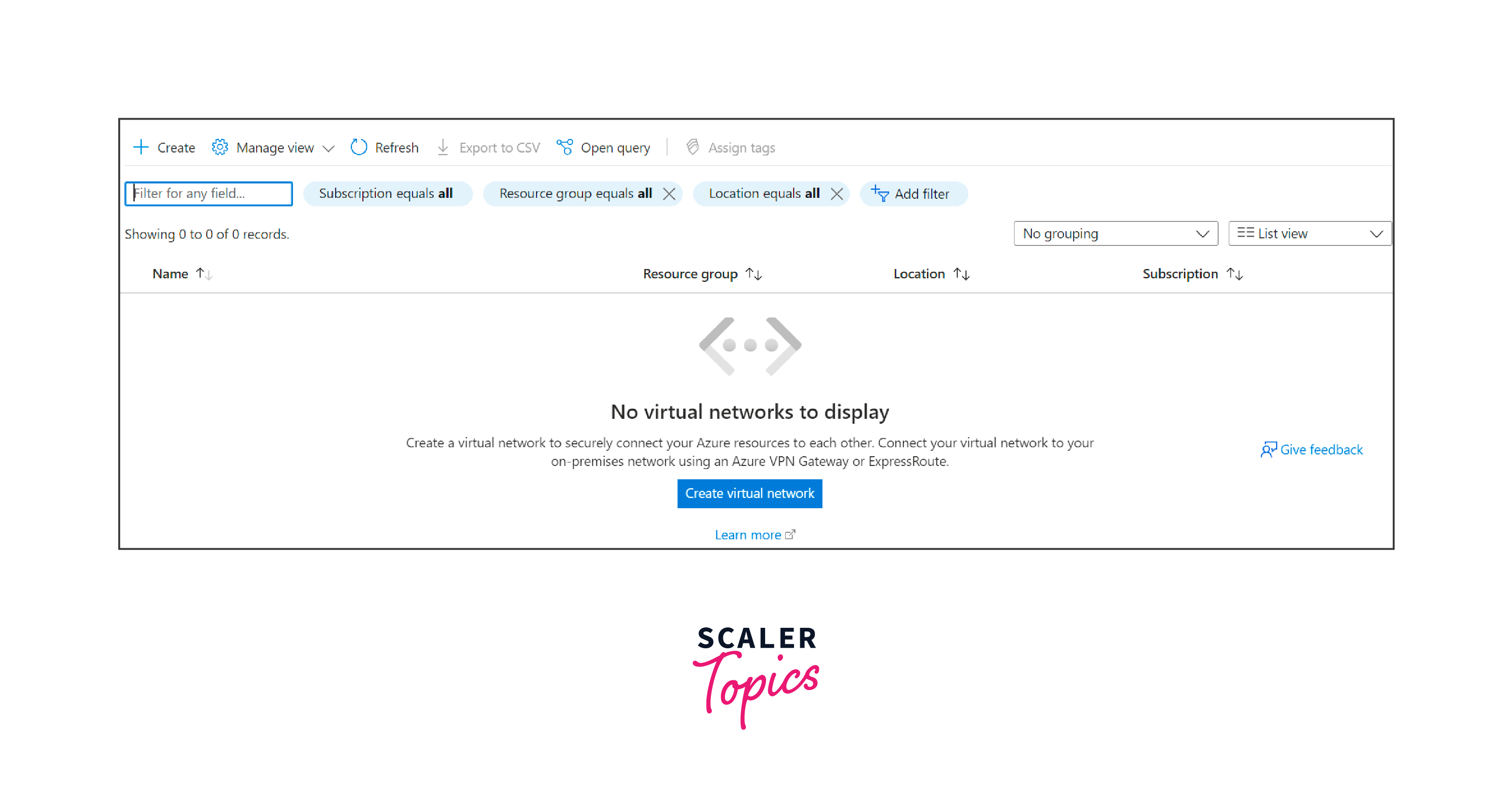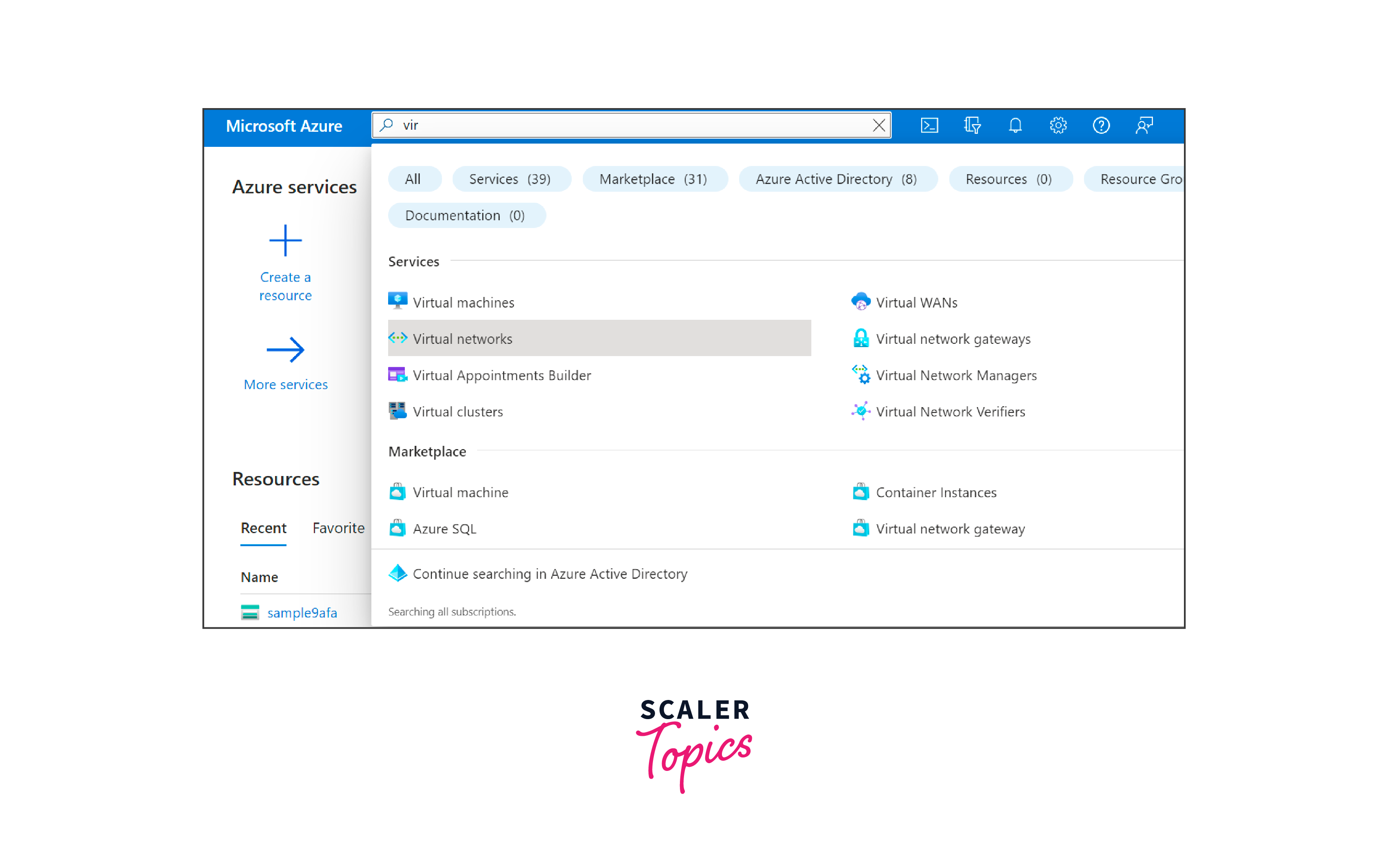 A Virtual network Azure acts as a container for multiple resources that can be assigned to different subnets. We can create multiple virtual machines that belong to the same virtual network by using different subnet addresses. The process of creating a virtual network Azure and Virtual Machine is illustrated in the next section.