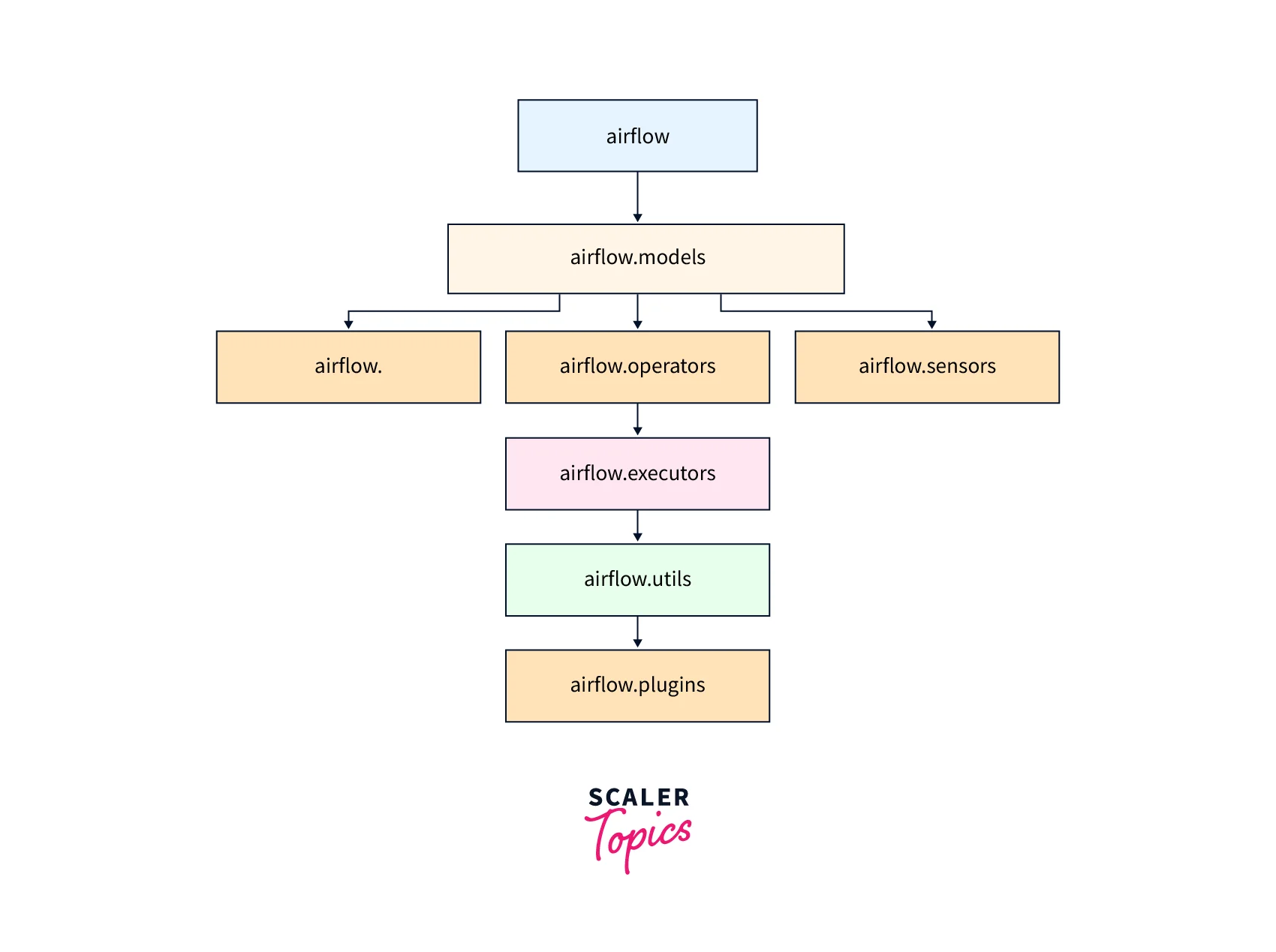 Apache Airflow is organized into modules that provide various components for creating, scheduling, and managing workflows. Overall, the module structure of Apache Airflow provides a modular and extensible framework for creating, scheduling, and managing workflows. Each module provides specific functionality that can be customized or extended by the user, allowing for greater flexibility and scalability.