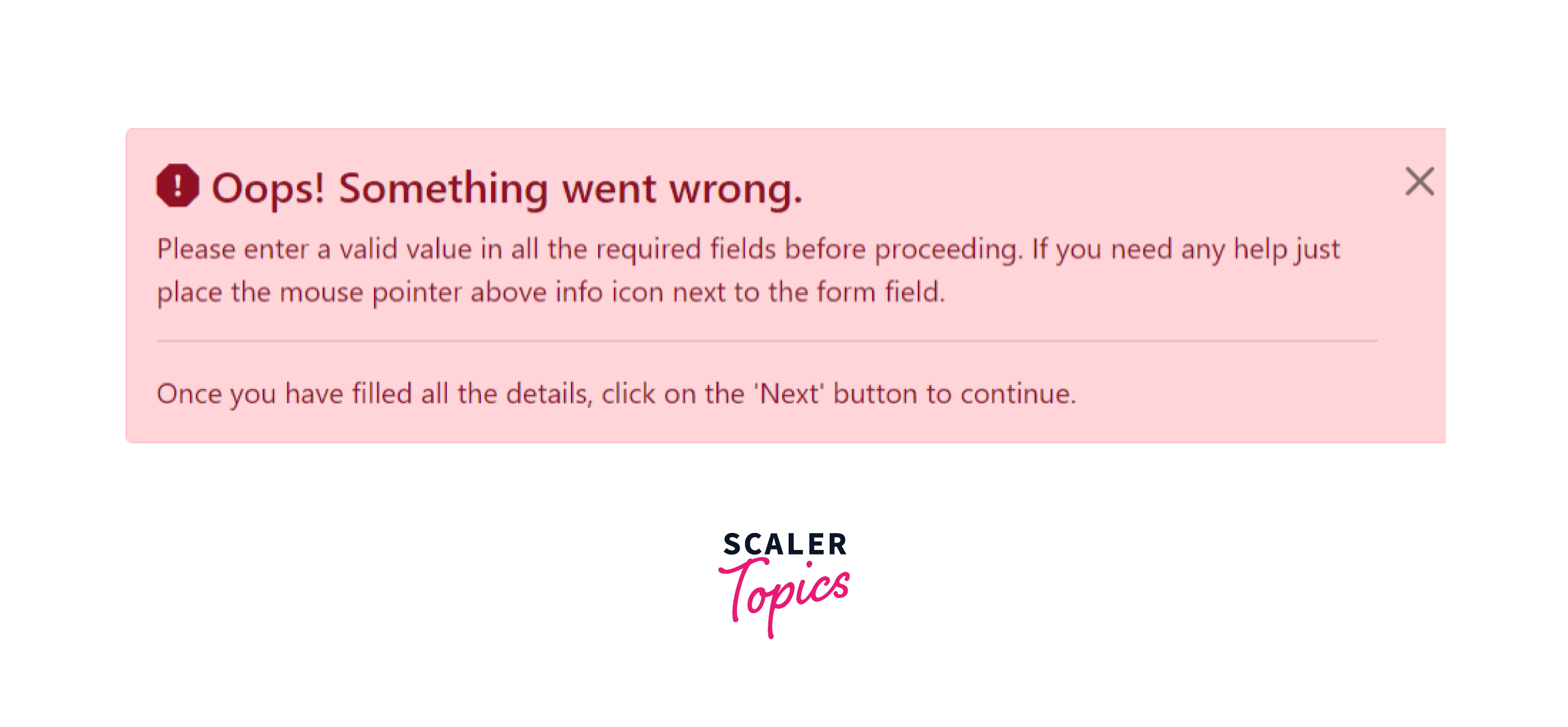 - We created Bootstrap alerts with icon and text with the complete explanation.