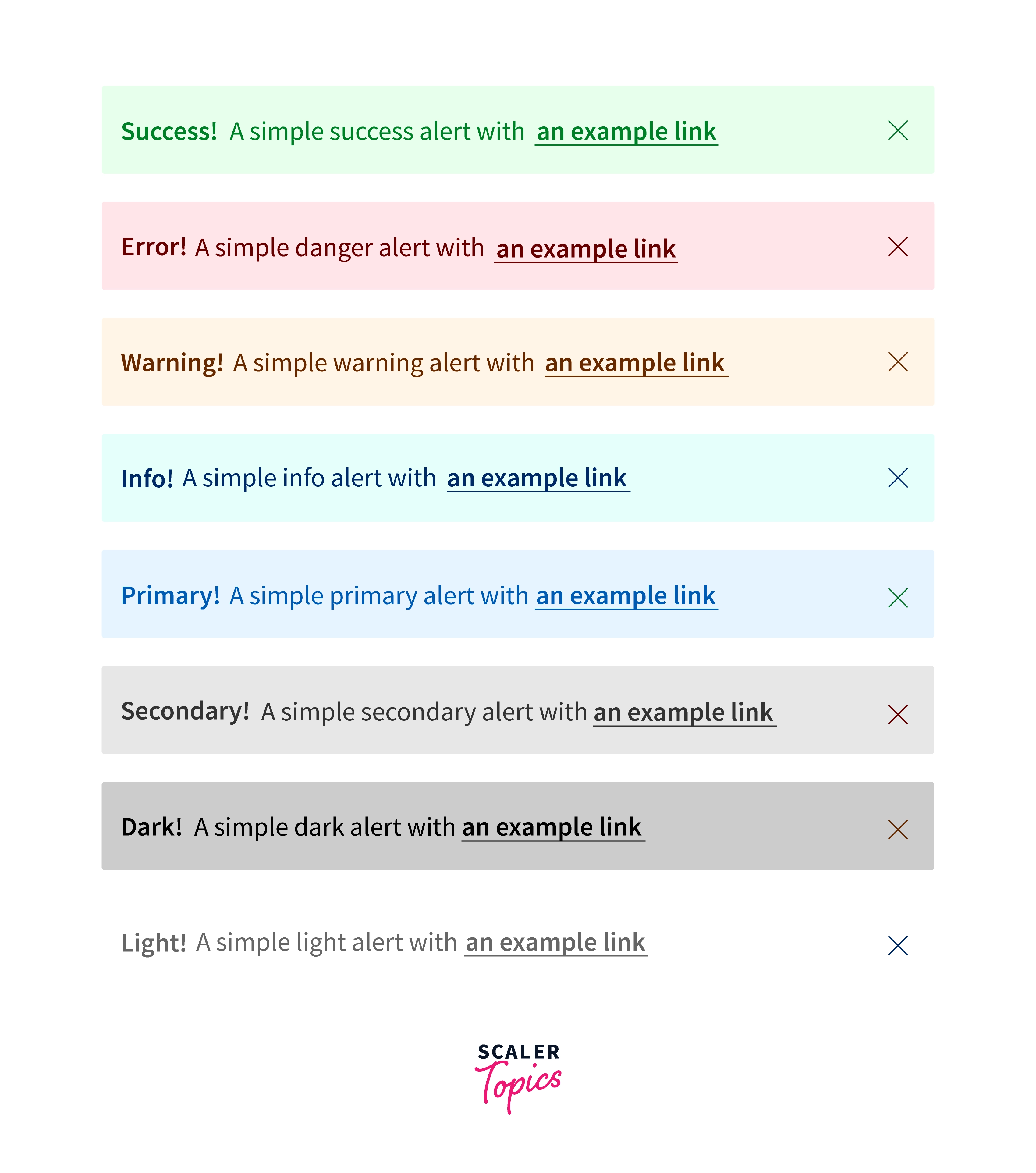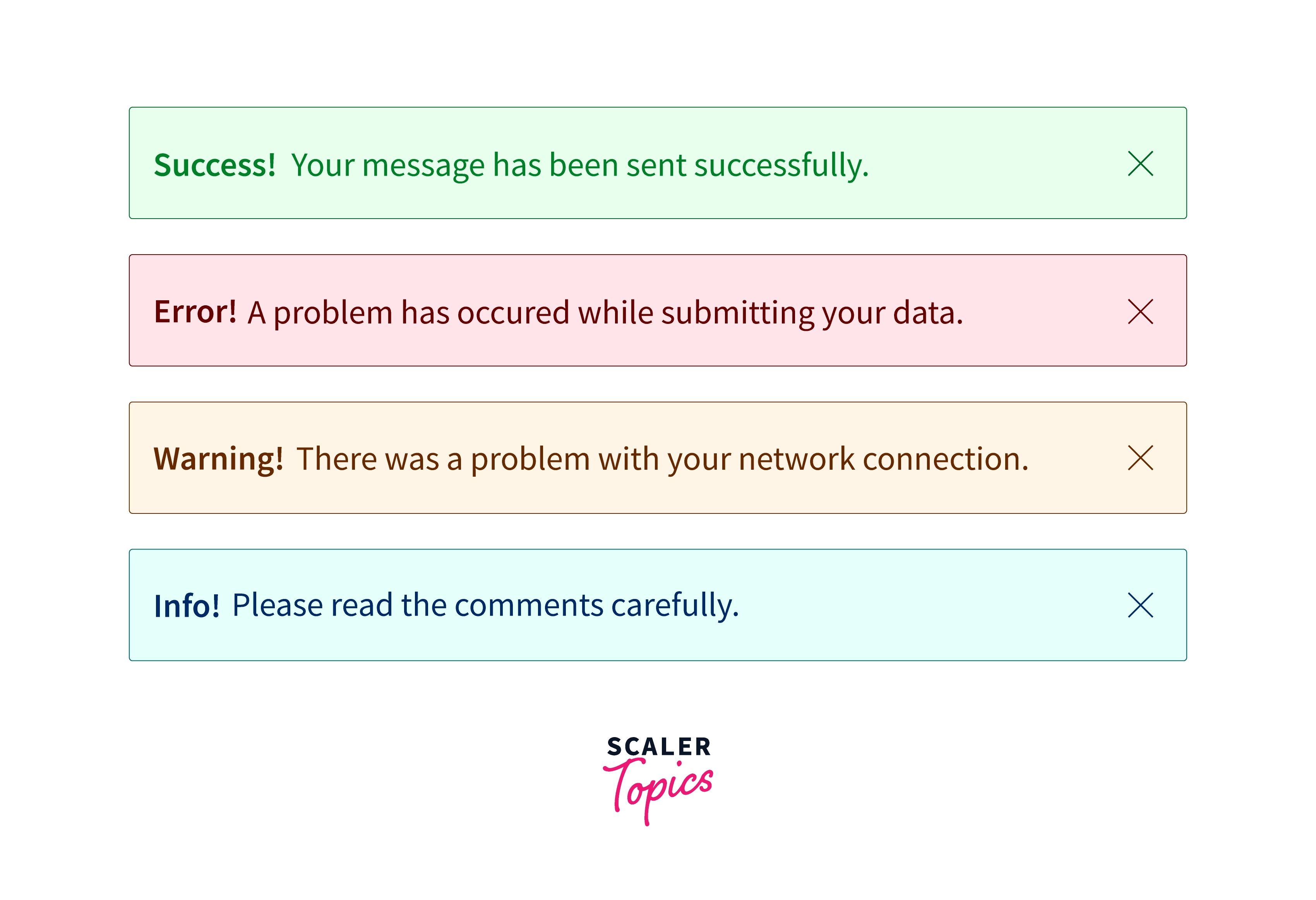 - Now we can create different alert layouts as per our requirements with the help of bootstrap alert class.