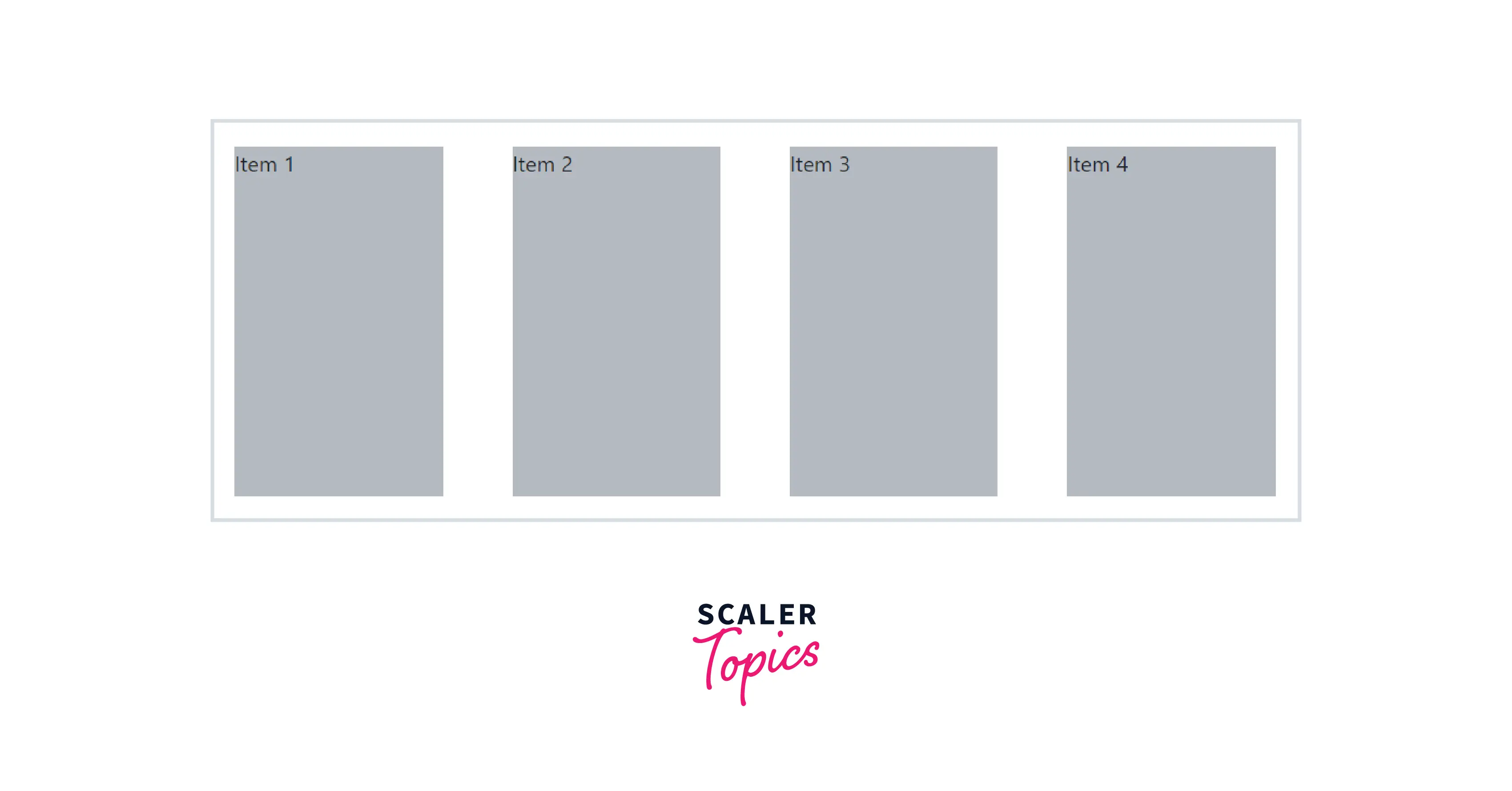 The CSS justify-content property defines how the browser distributes space between and around content items along the main-axis of a flex container, and the inline axis of a grid container. You can simply use the CSS justify-content property with the value space-between to set space between flexbox items. In the following example the flex container has 4 items where each flex item has a width of 20%, and the remaining 20% space is distributed evenly between the flex items.