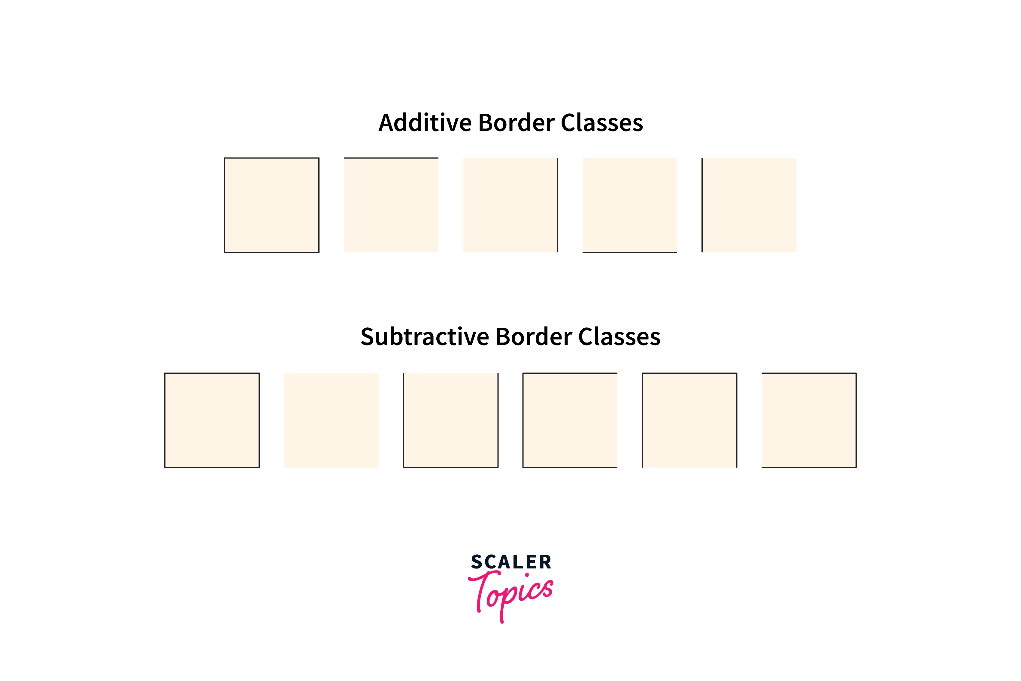 The utility classes that are used to add a border around the HTML element are known as additive classes whereas the ones that are used to remove the borders around the HTML element are known as subtractive utility classes.