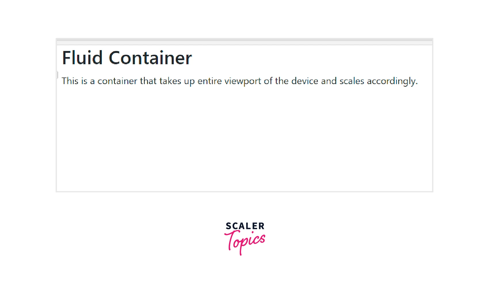 The following example illustrates a fluid container. Try this code on different viewports of different sizes to see the responsiveness of the container.