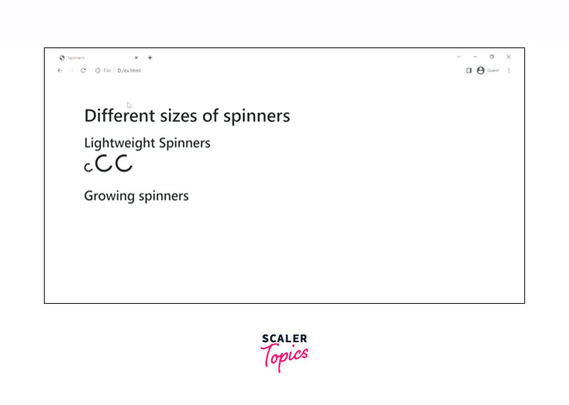 Therefore, as you can see in the above output, we have changed the sizes of the spinners using some inline CSS of height and width.