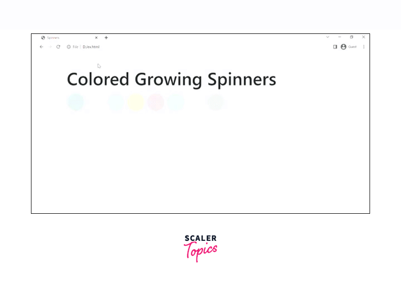 Therefore, as you can see in the output, we have created different colored growing spinners using the different text-color utilities of bootstrap along with the .spinner-grow utility.
