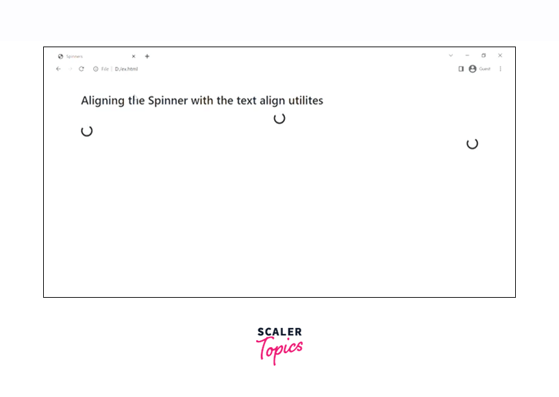 Therefore, as you can see in the above output, the first spinner has been center aligned using the .justify-content-center class whereas the second spinner is aligned using the align-items-center utility.